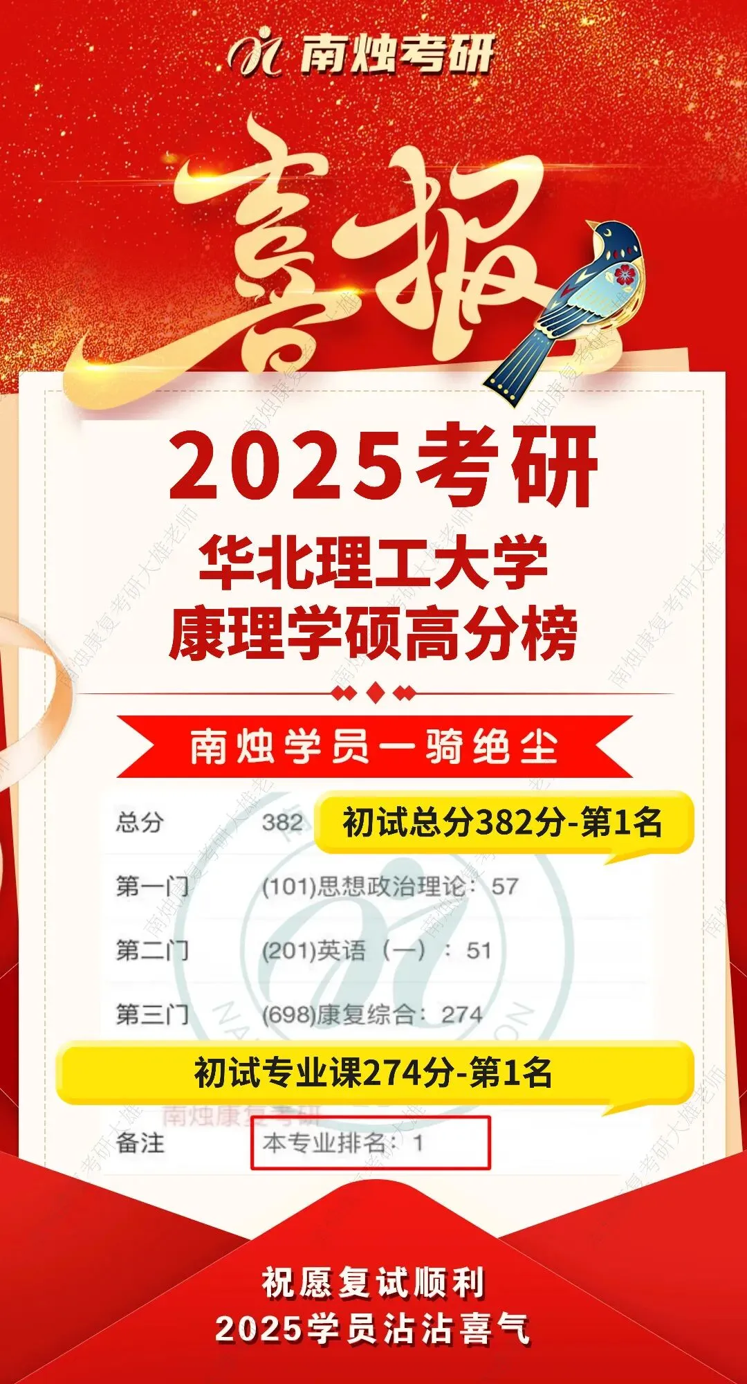 Hello,大家好,我是2025考研以初试总分第一名382分,初试专业课第一名274分,二战上岸华北理工大学康理学硕的学姐。