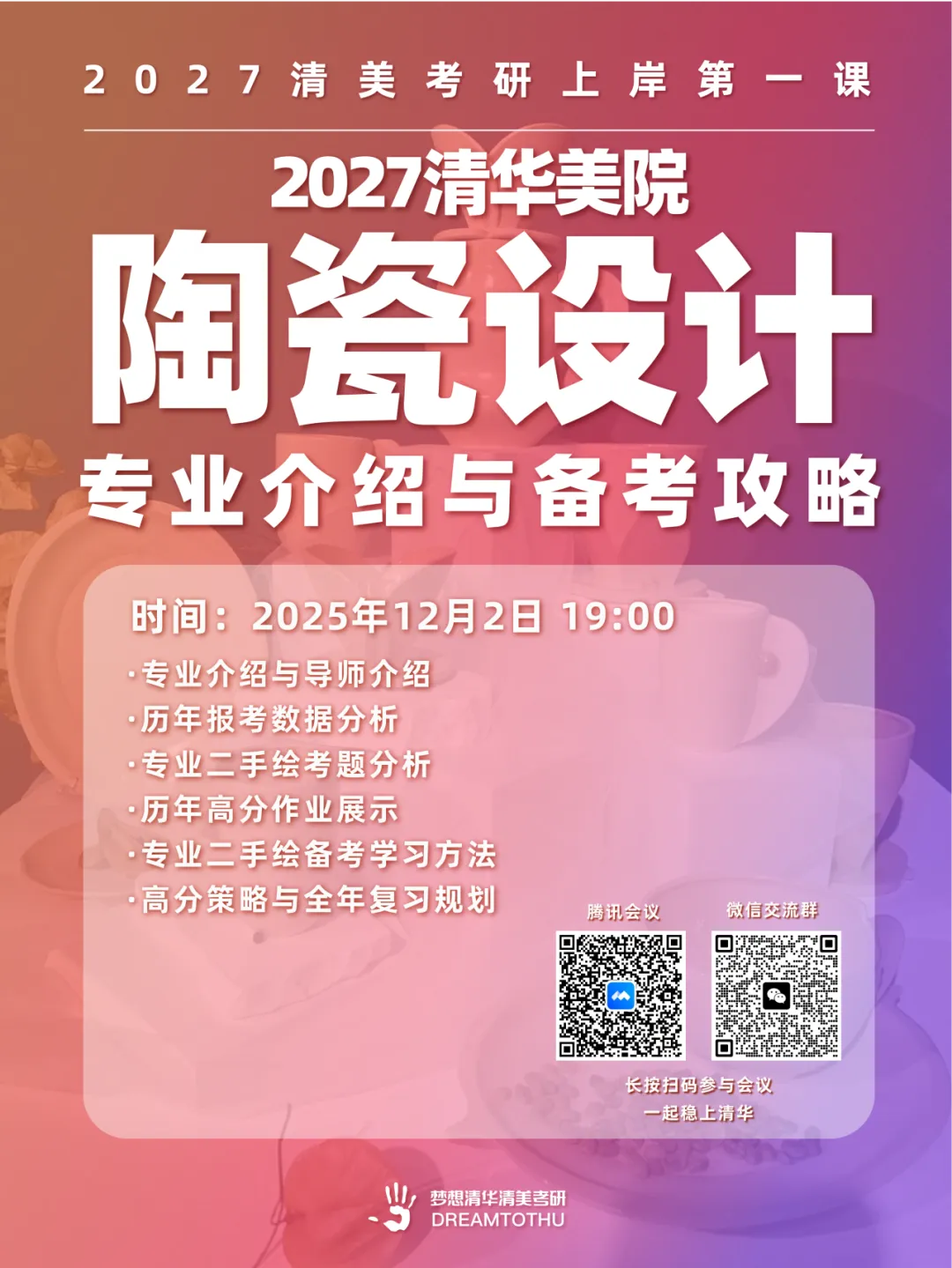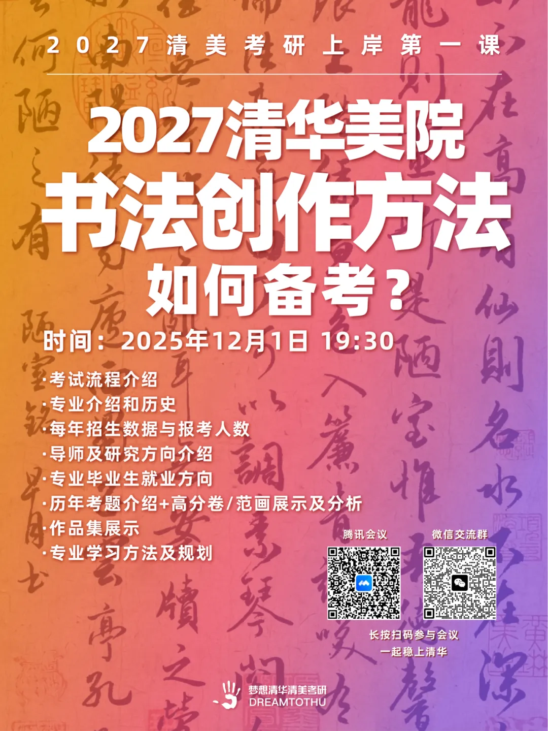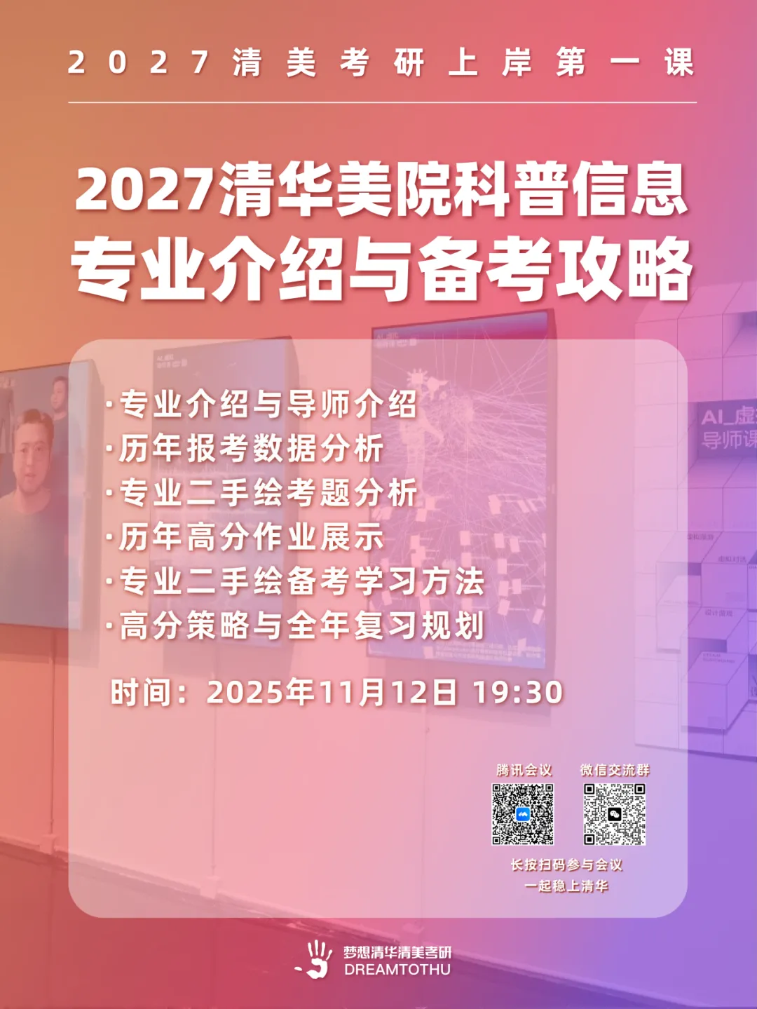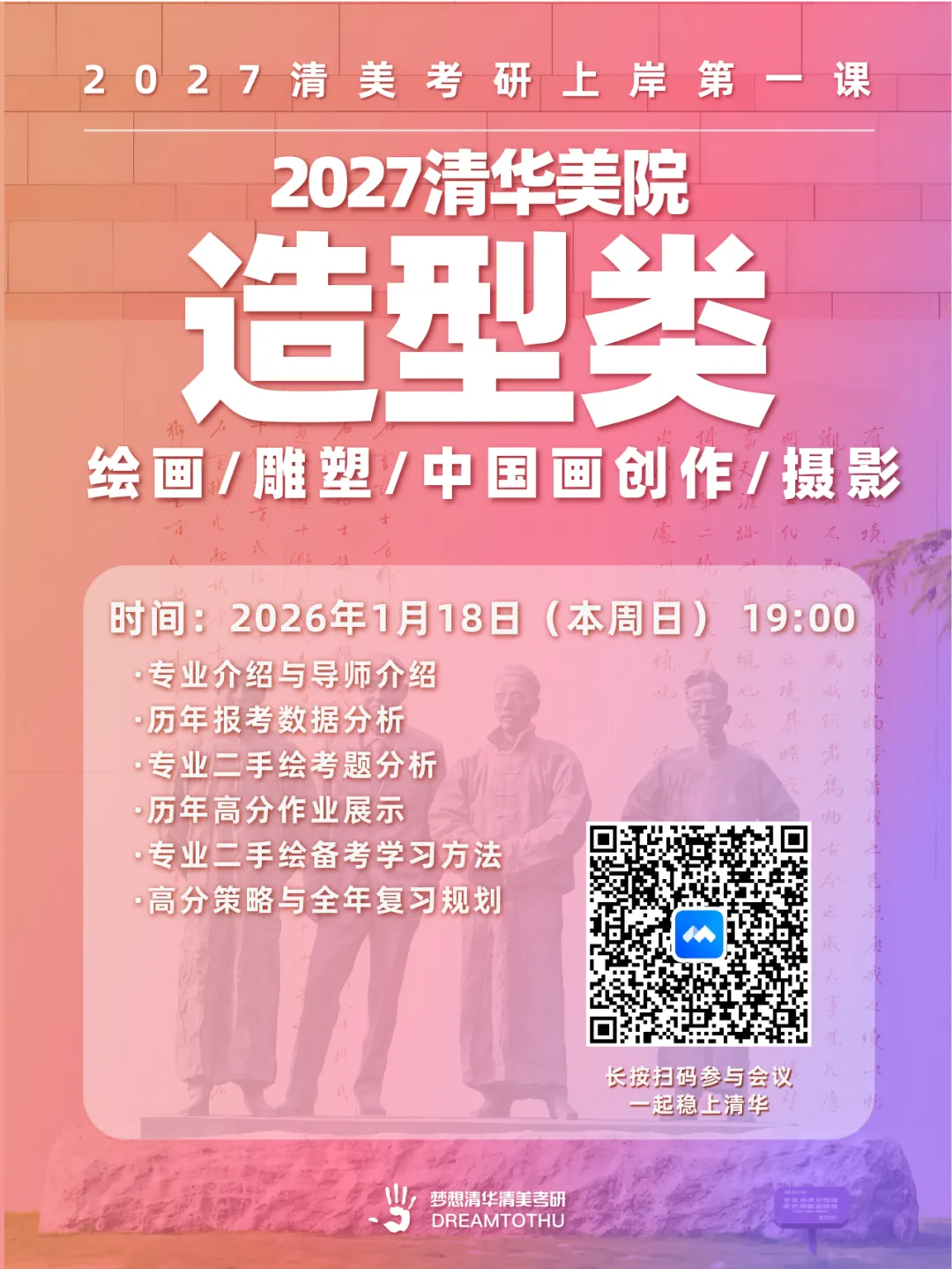 今晚7:00😉,清华美院造型类专业专场讲座重磅开启!✨涵盖绘画、雕塑、中国画创作、摄影四大方向,全方位解析清美上岸路径!