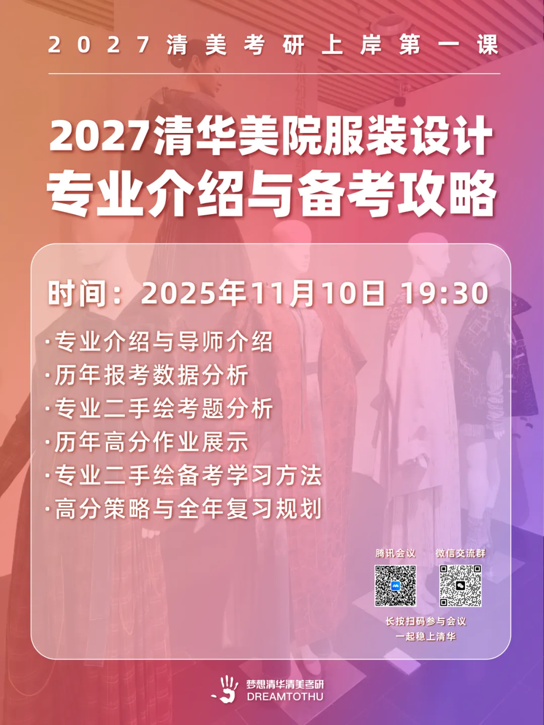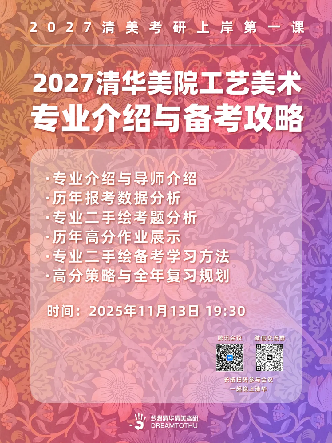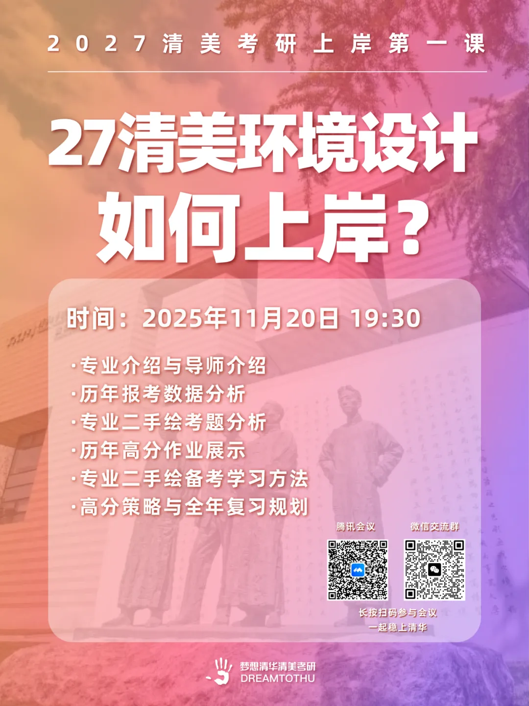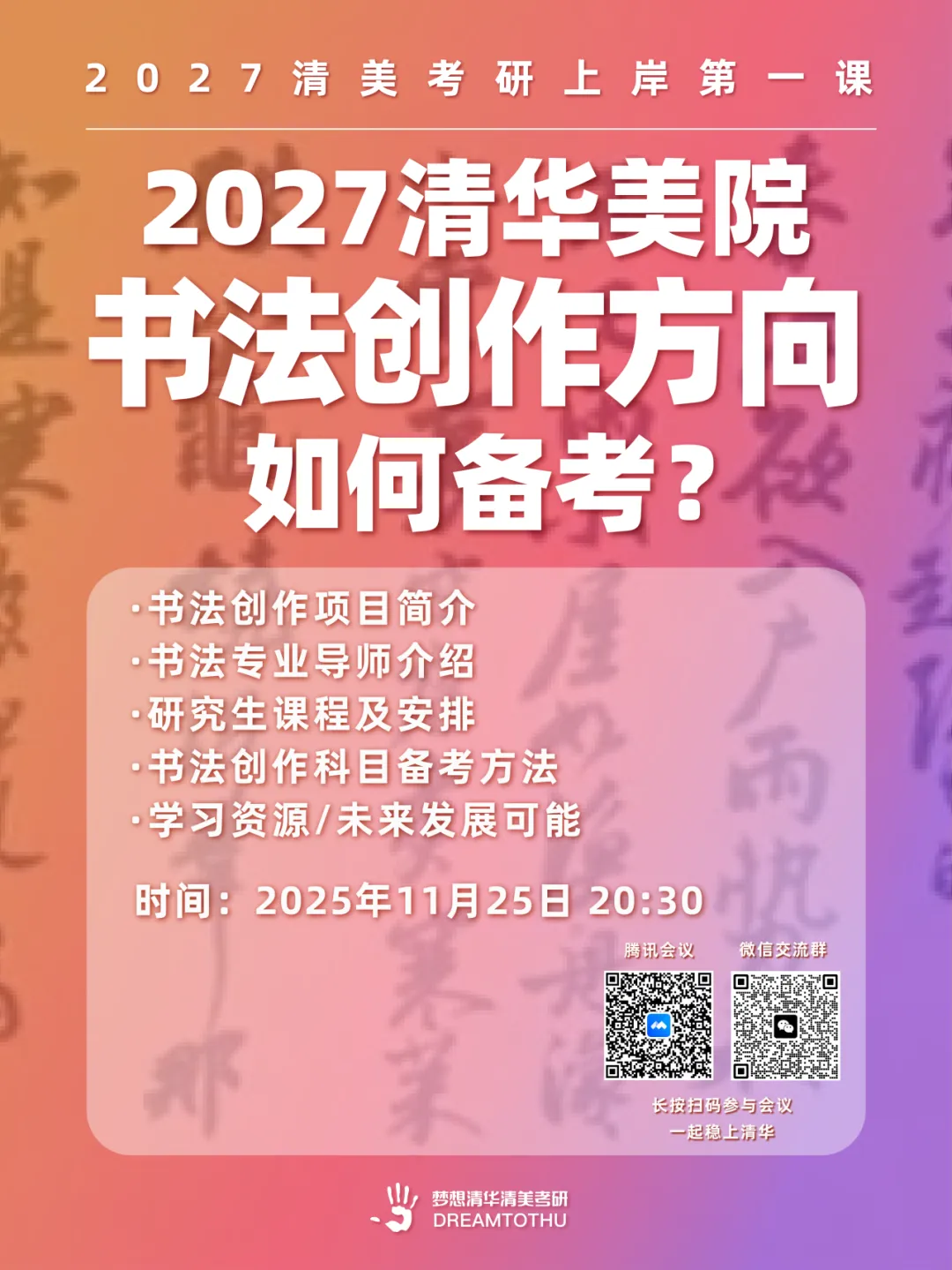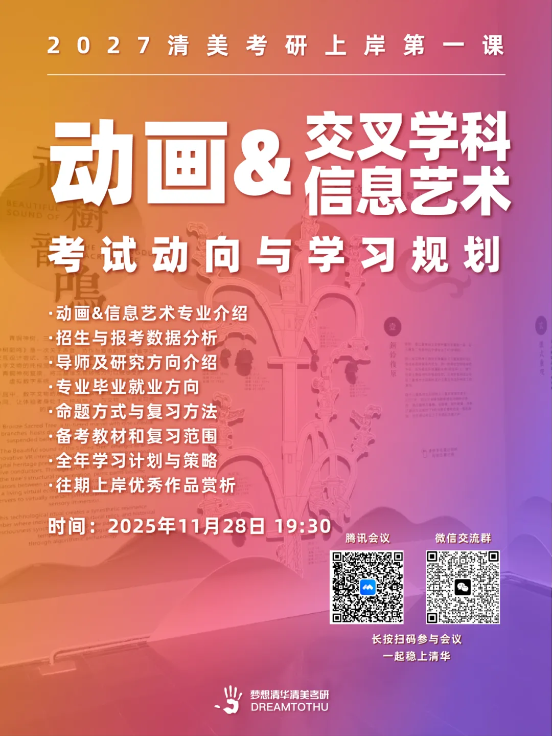 今晚7:00😉,清华美院造型类专业专场讲座重磅开启!✨涵盖绘画、雕塑、中国画创作、摄影四大方向,全方位解析清美上岸路径!