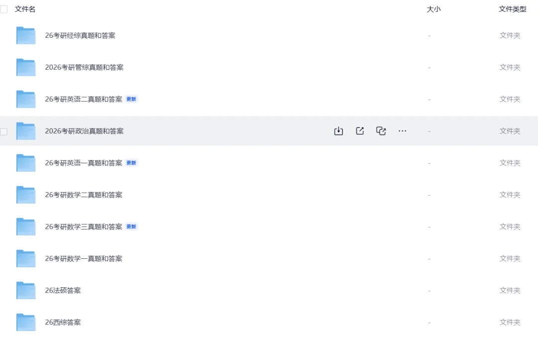 前,2026年研究生考试《政治》《英语一》《英语二》《数学一》《数学二》《数学三》《管理类综合能力》《经济类综合能力》《教育综合》《计算机学科专业基础综合》等科目已经结束,真题答案上传更新中,可以来准备对答案了