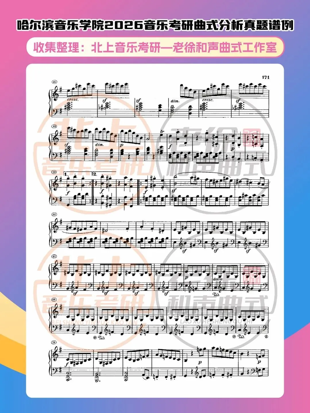>哈尔滨音乐学学2026音乐考研曲式分析真题谱例|北上音乐考研—老徐和声曲式工作室收集整理