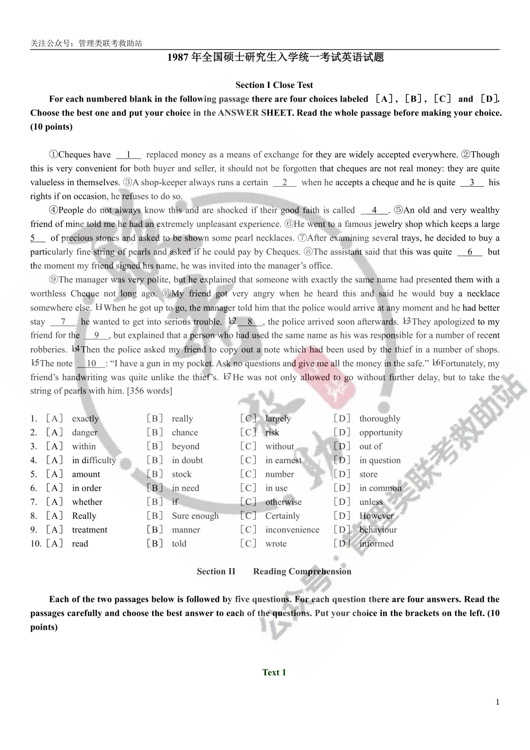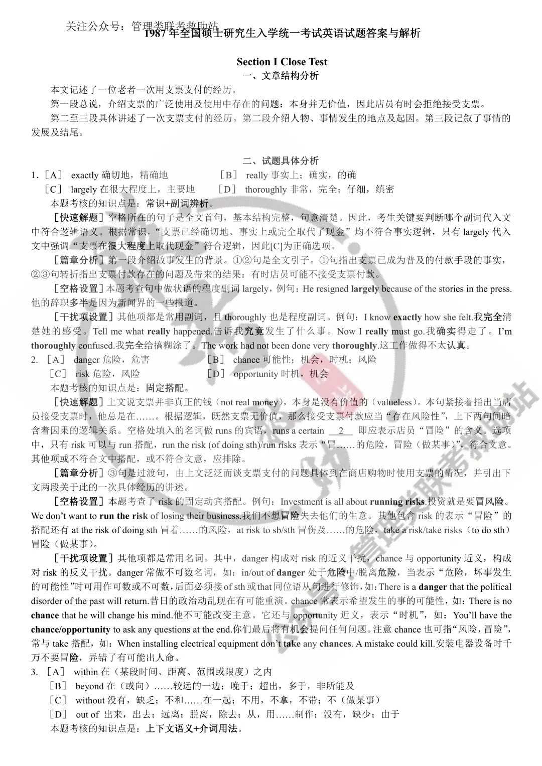 1987年历年考研考研英语真题(详细解析版)