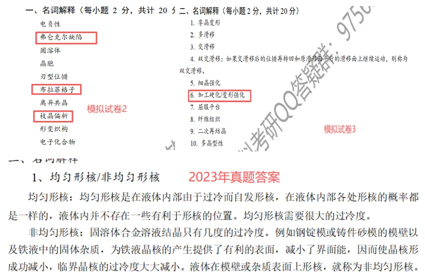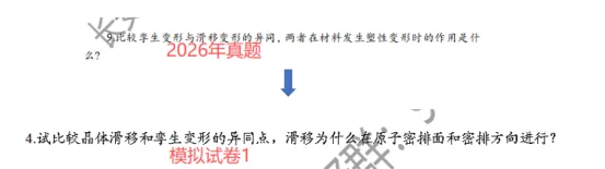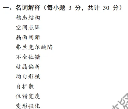 可以看到,名词解释其实相对来说是非常简单的,可以说是送分题啦,基本上都是常规性题目,除了位错宽度这一个,其他的轻松拿下。同时,在我们滴模拟试卷里面也都考察过哦!其余的在师兄整理的真题详解答案(独家)里面都有滴哦,师兄就不一一列举啦,大家可以加文末专业群领取!