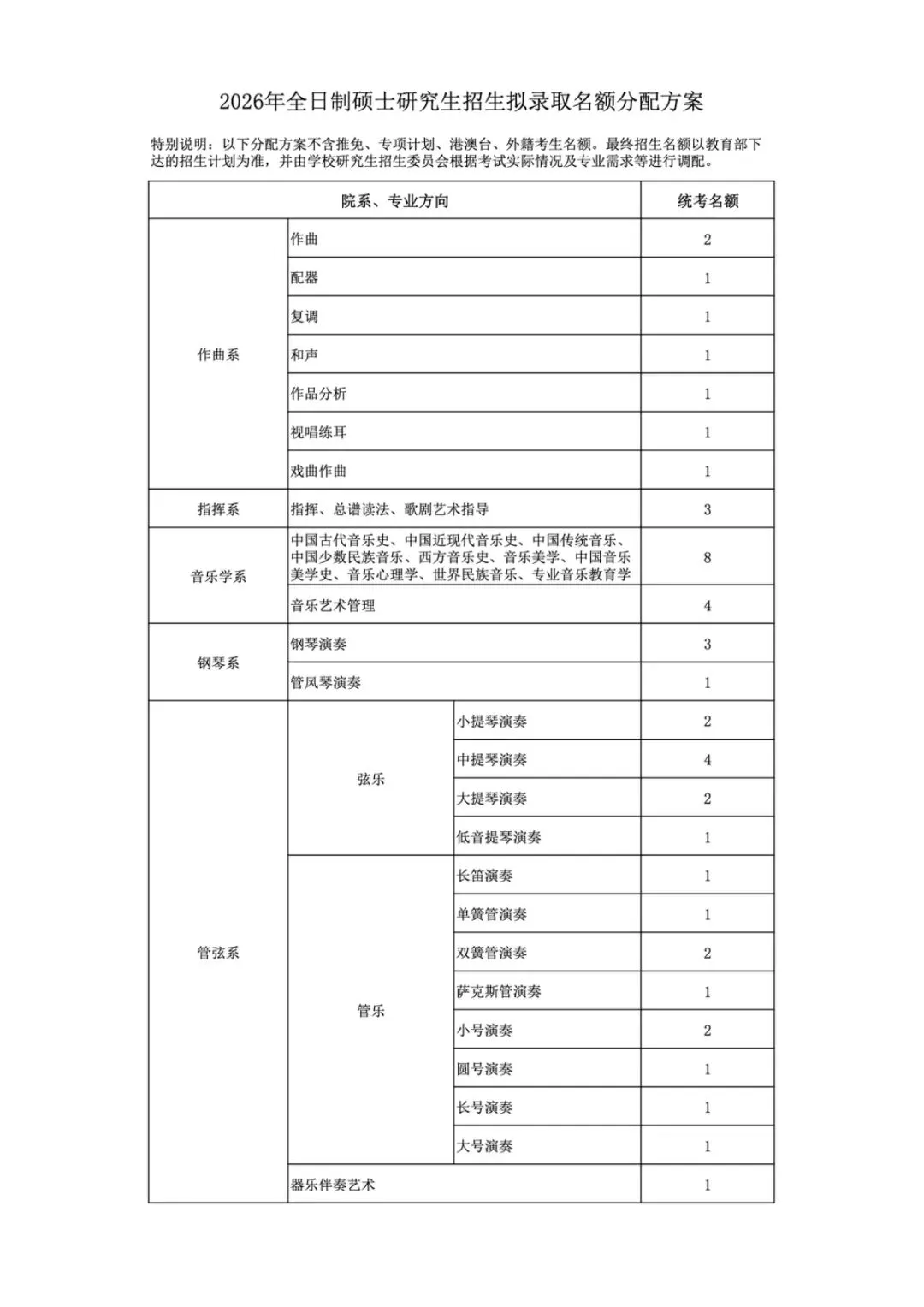 管弦系2026年统考硕士研究生招生考试基本信息