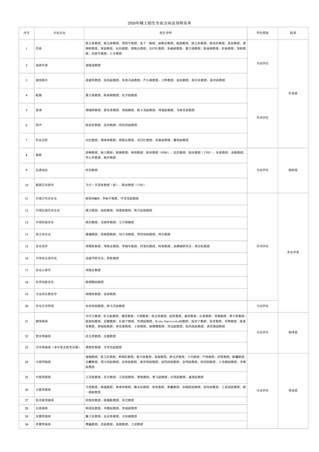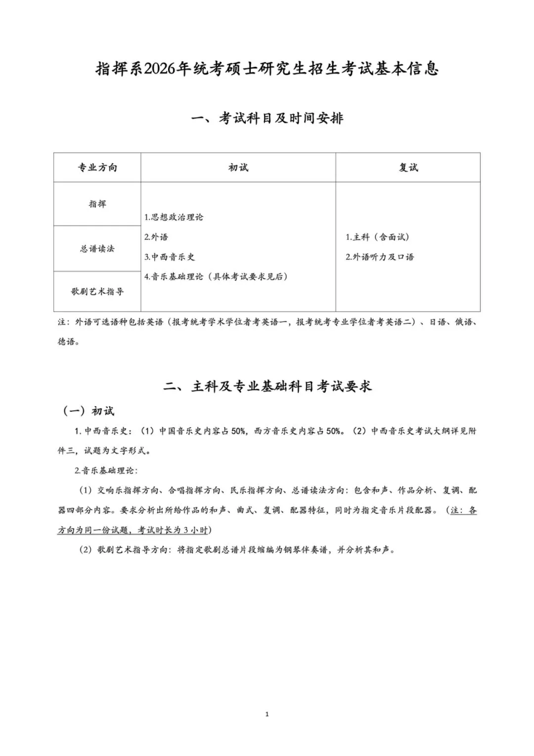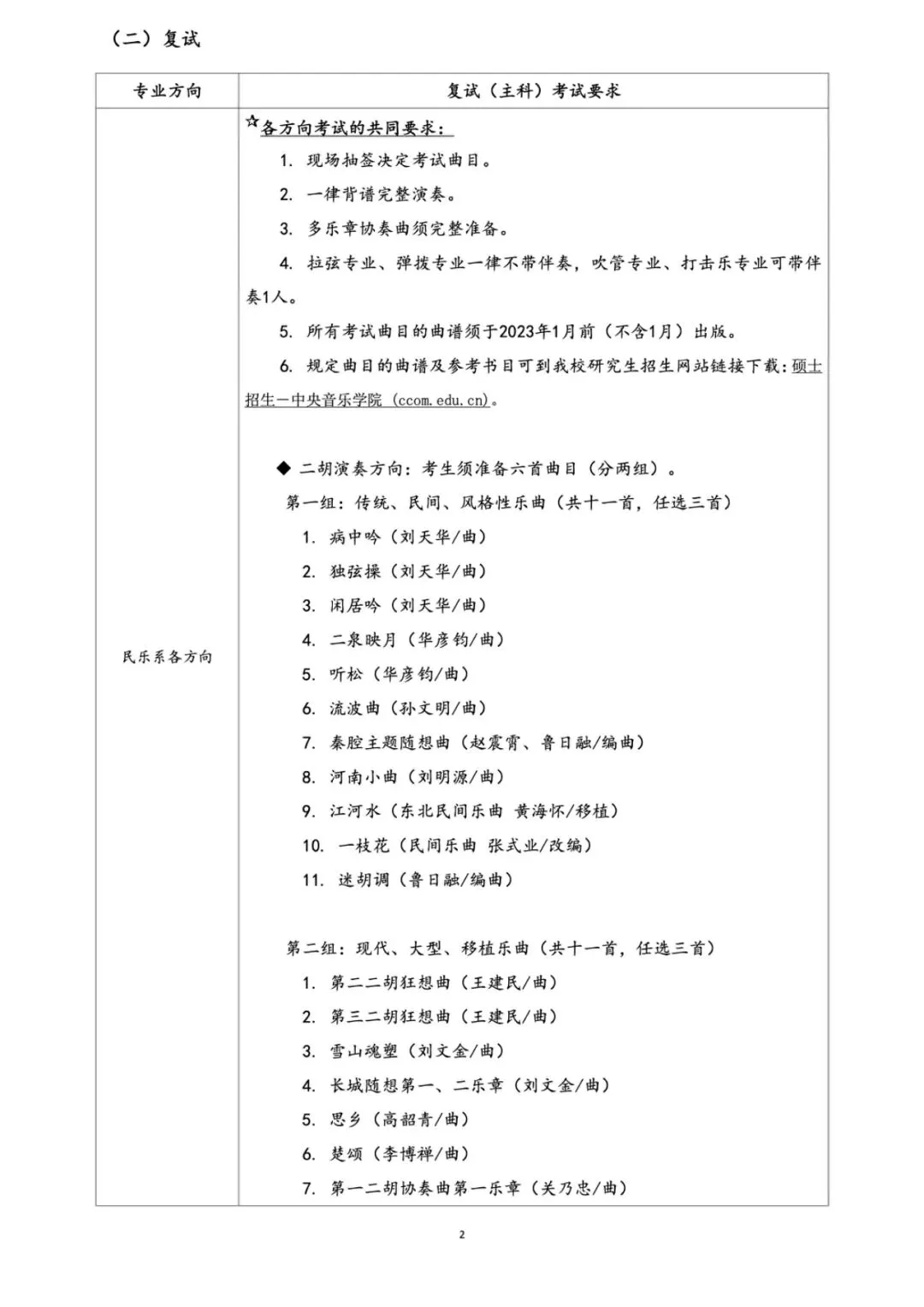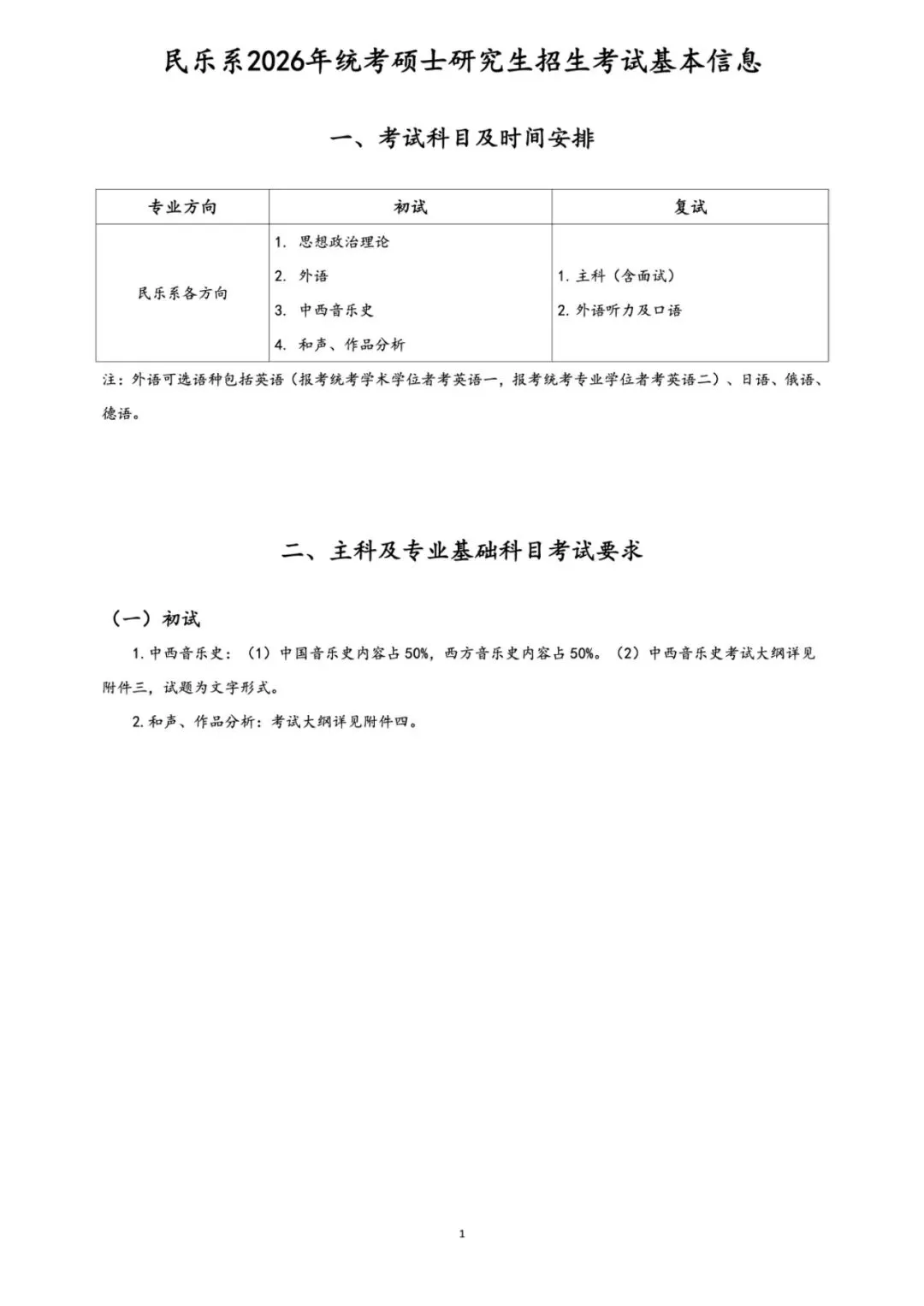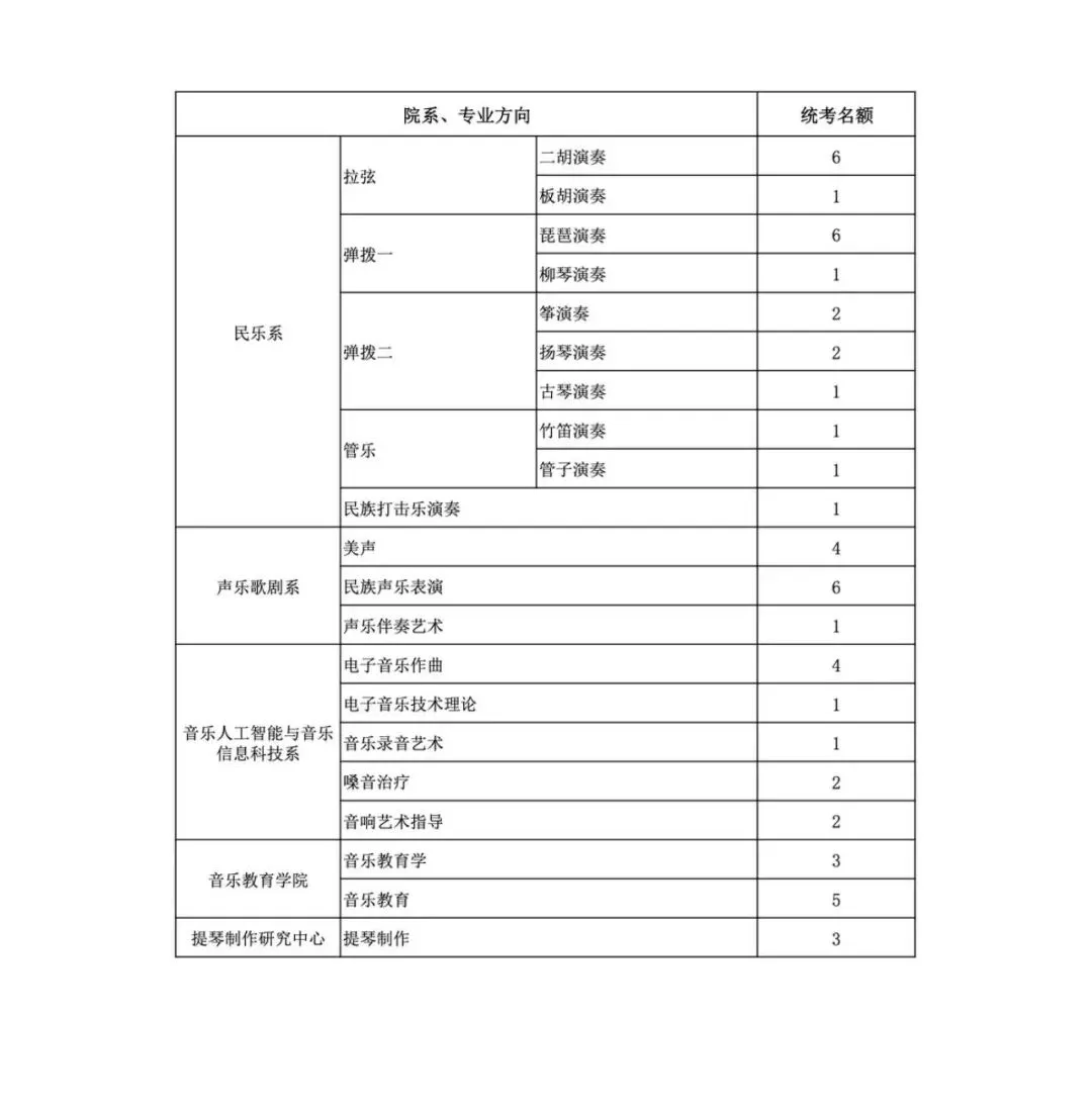 民乐系2026年统考硕士研究生招生考试基本信息