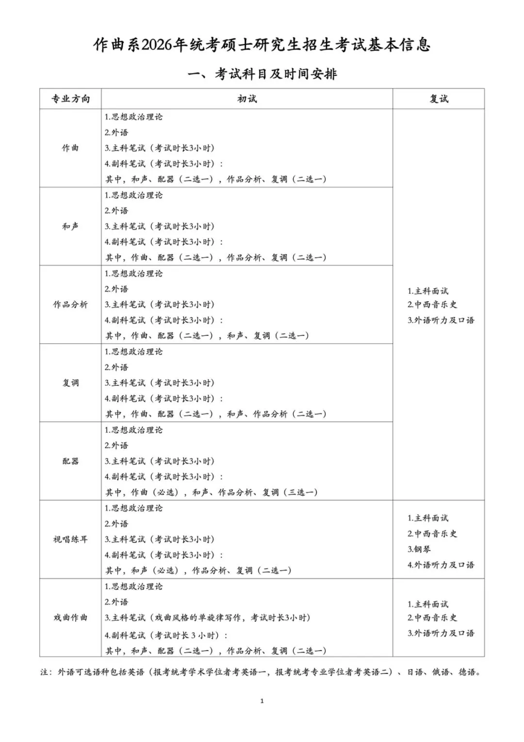 作曲系2026年统考硕士研究生招生考试基本信息