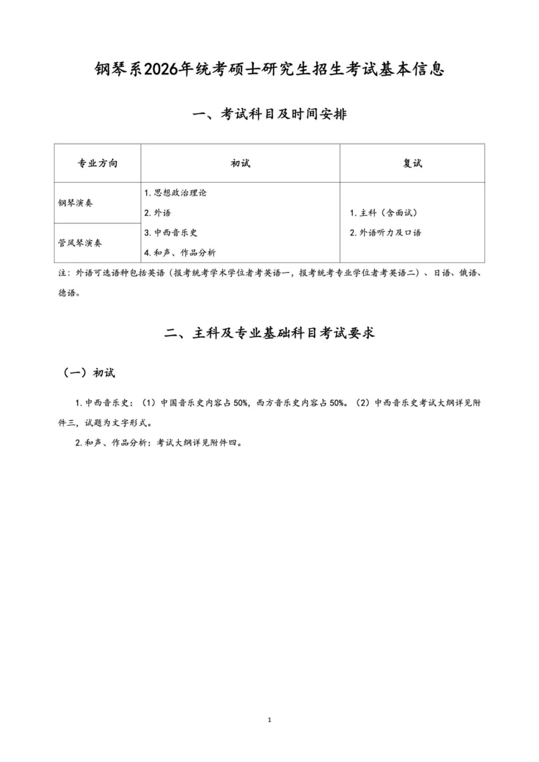 钢琴系2026年统考硕士研究生招生考试基本信息