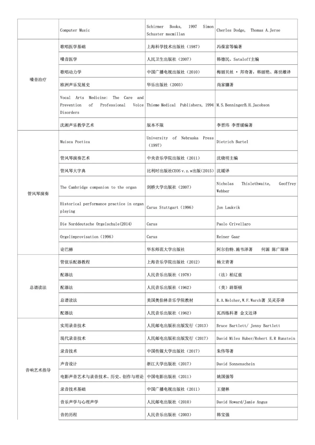 专业参考书目(建议阅读书目)