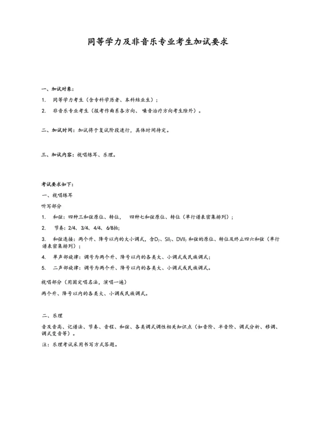 同等学力及非音乐专业考生加试要求