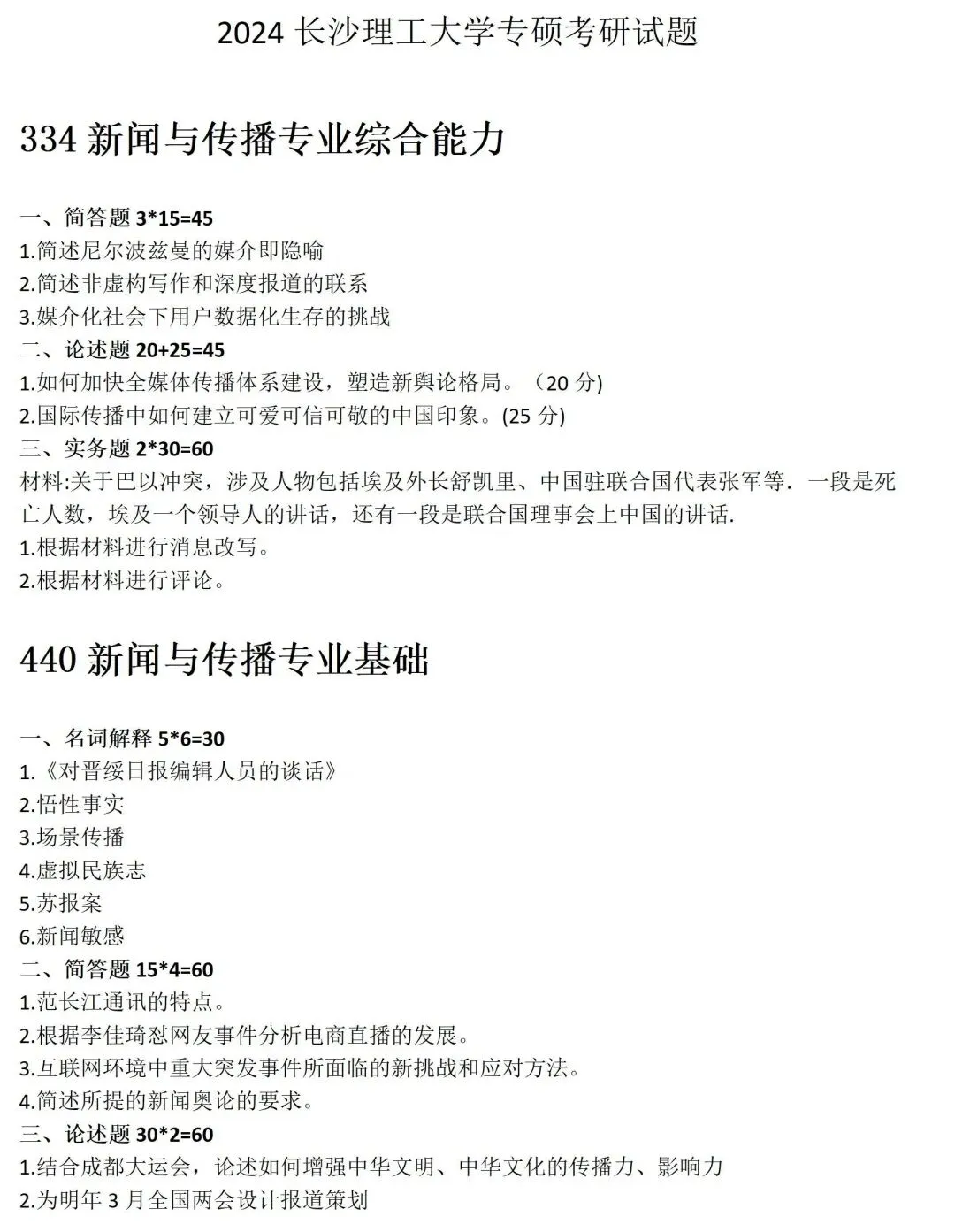 >长沙理工大学新闻与传播考研真题2024