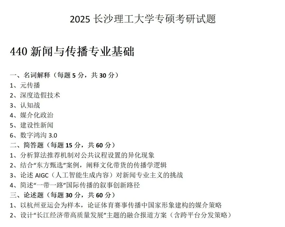 长沙理工大学新闻与传播考研真题2019-2025历年
