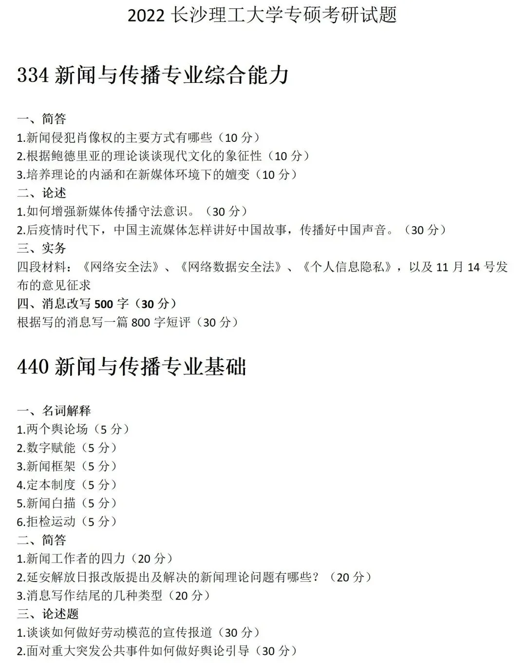 >长沙理工大学新闻与传播考研真题2022
