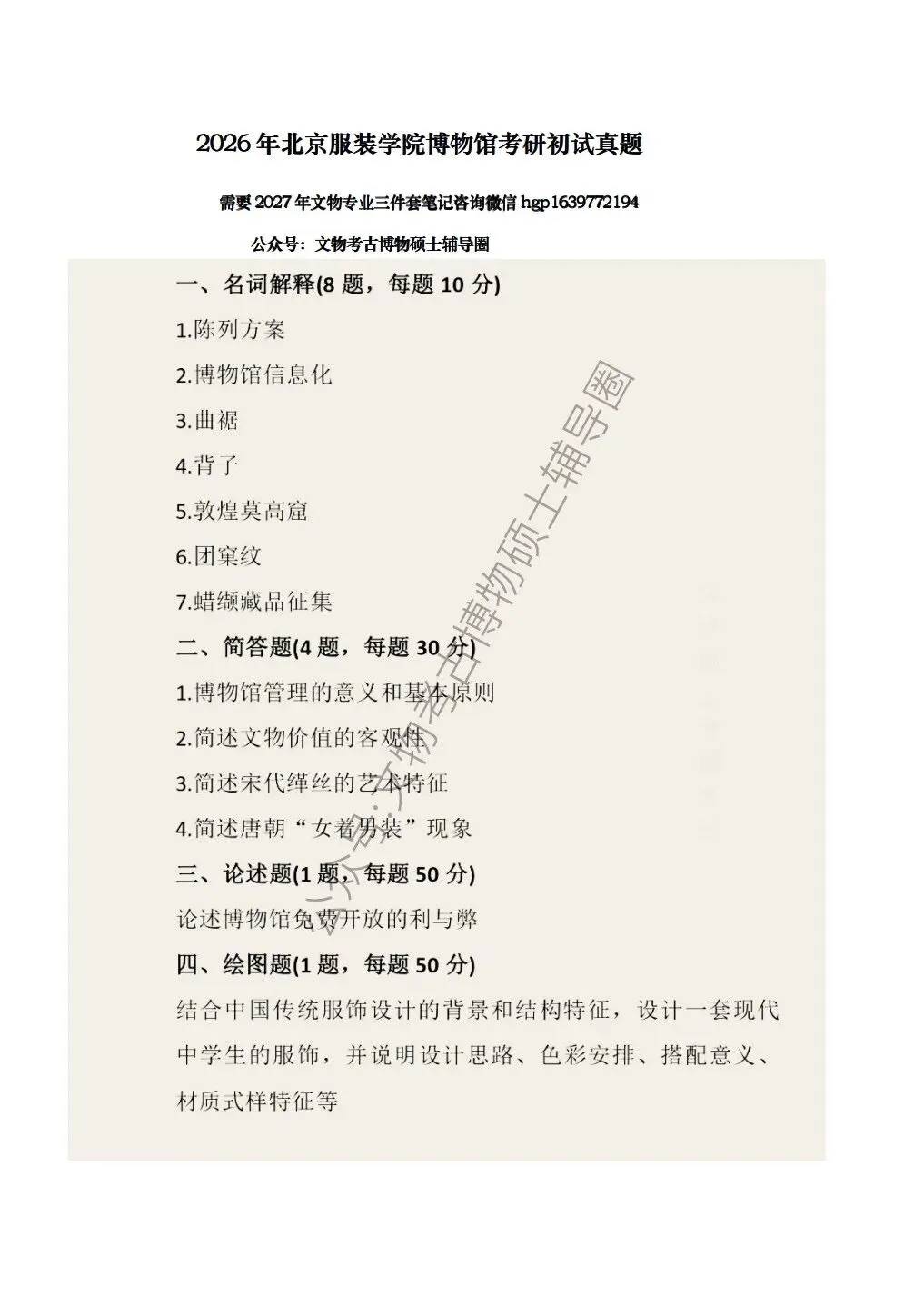 2026年北京服装博物馆考研真题答案讲解