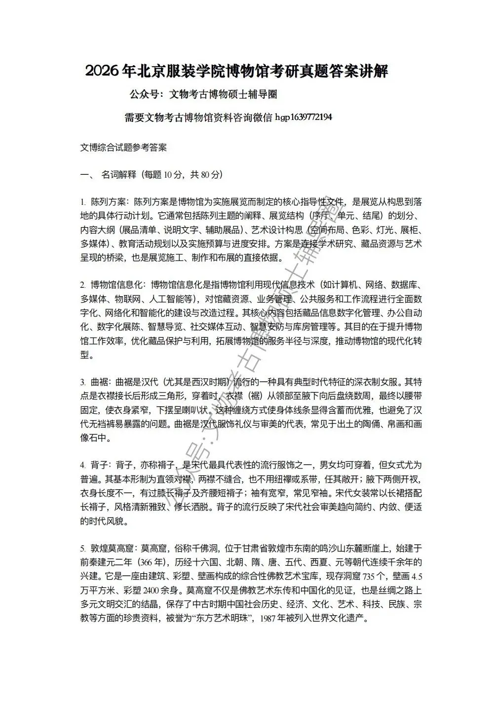 >第16集2026年北京服装学院博物馆考研真题答案讲解课视频