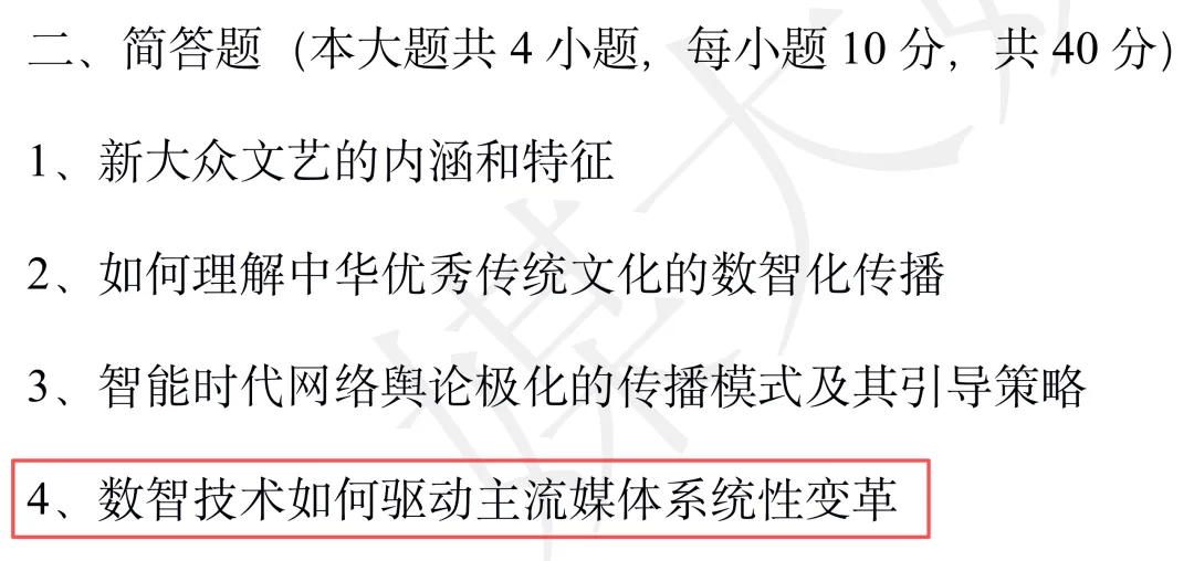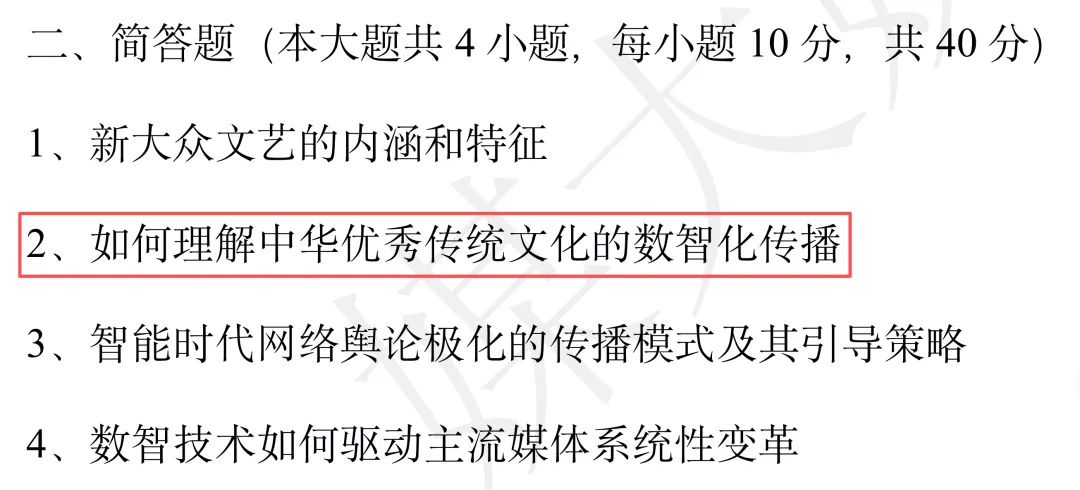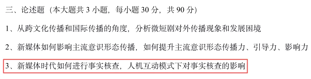 6、今年清华专硕的方向是数字文创传播。今年也考了考了文化新业态,题目是结合当前“文化新业态”(如科普短视频、VR科学馆),论述传媒如何有效提升公众的科学素养。备考西交的同学之后也可以多关注清华专硕的真题。题目风格和西交很接近,都很关注智能传播和文化传播。
