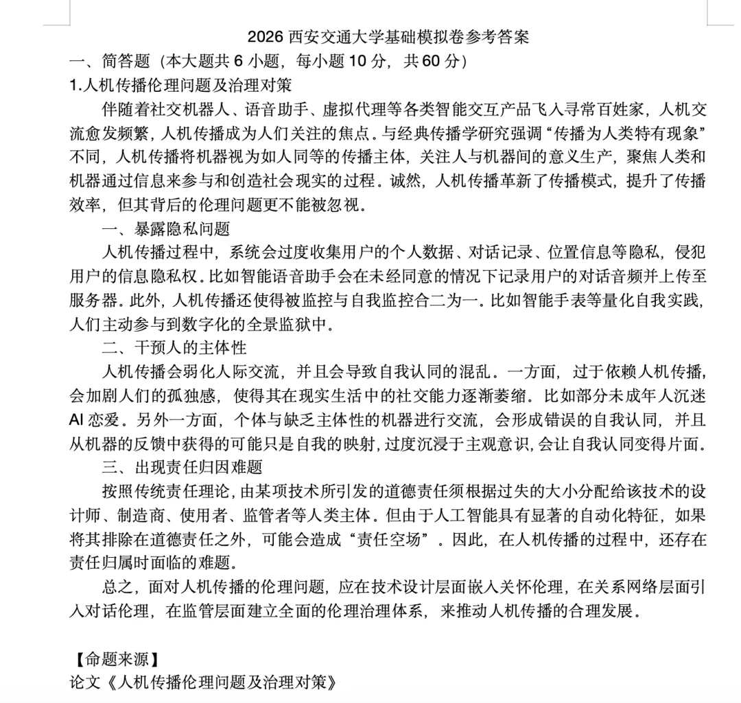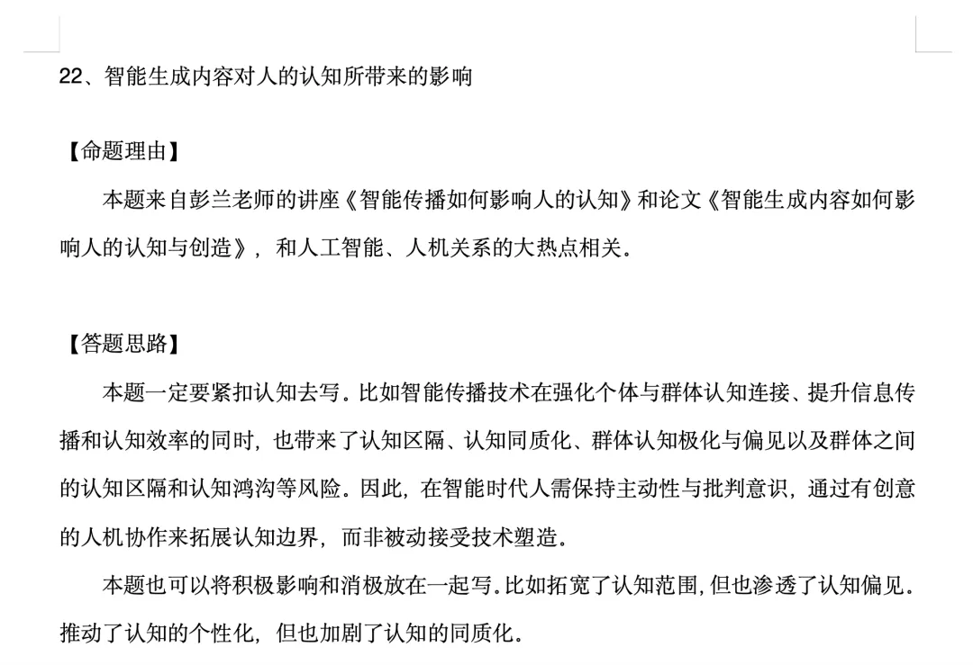 4、备考西交的同学需要重点练习技术影响类的题目。比如人工智能对舆论引导、网络治理的影响,是最高频的考题类型。