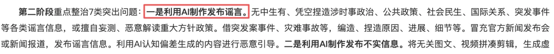 “清朗・整治AI技术滥用”专项行动,将利用AI制作发布谣言列为重点整治对象。