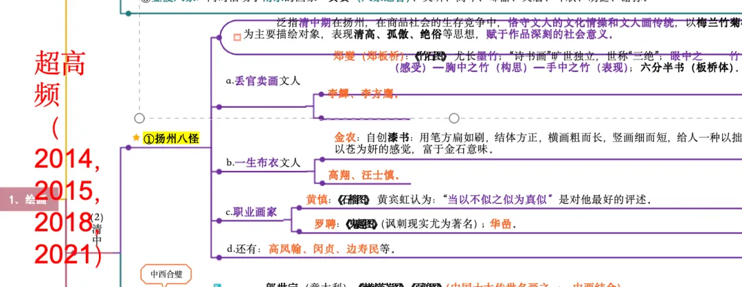 央民艺术理论考试存在明显的“轮回出题”现象,核心考点会以不同题型反复出现。以“扬州八怪”为例,可能今年作为名词解释考察基本概念,明年就升级为简答题要求分析其艺术特色,后年甚至可能作为论述题探讨其历史影响。同样,“芥子园画传”“浙派”“文人画”等高频考点也呈现类似规律。这提醒考生:对于这些反复出现的核心知识点,不能仅仅满足于记住定义,而要从名词解释、简答、论述三个层次全面准备,做到“一题三用”——既能简洁定义,又能展开分析,还能深入论述,方能从容应对各种题型变化。