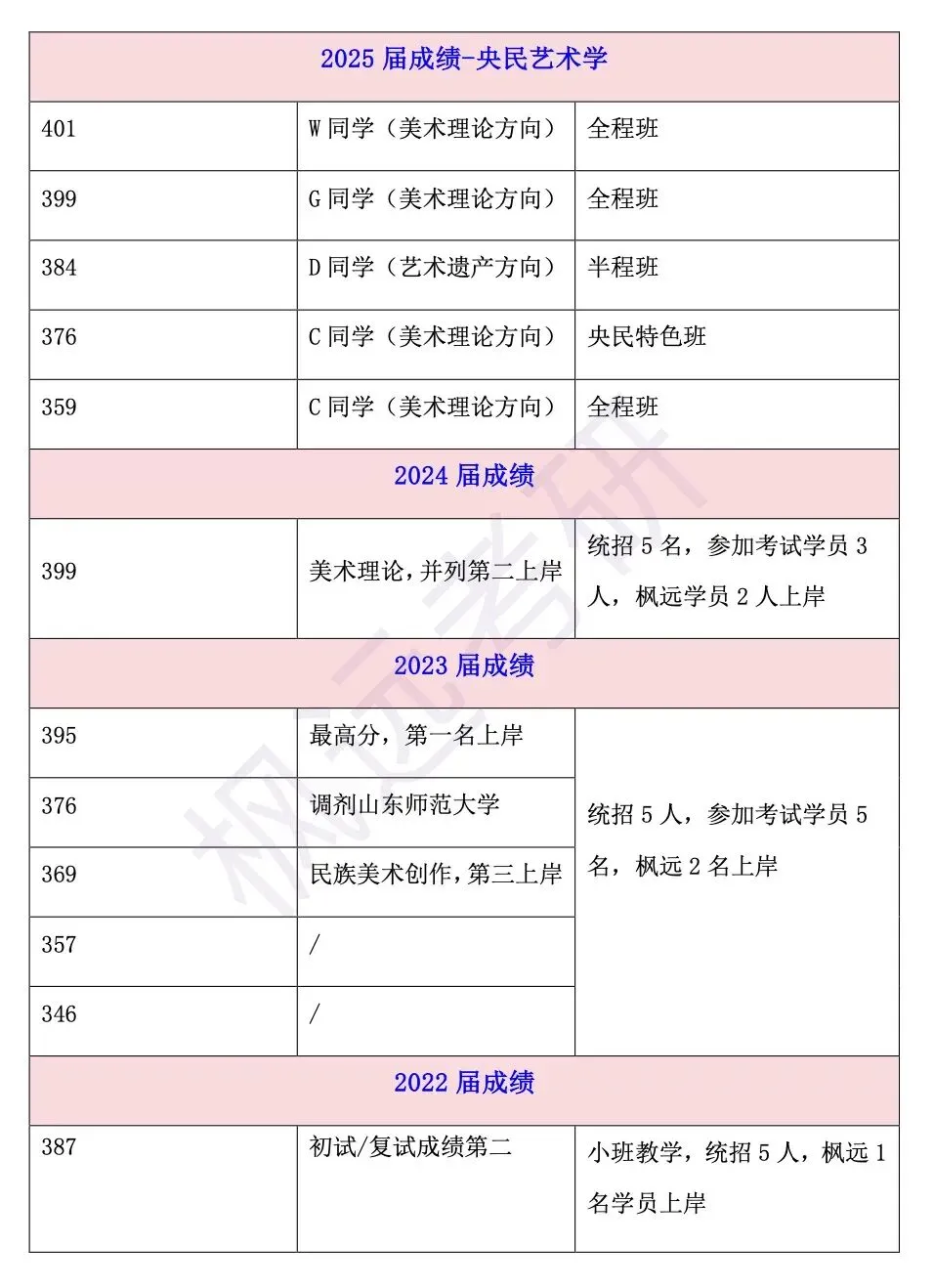对于2027届的考研同学而言,早准备、广阅读、勤思考,是取得理想成绩的关键。祝愿每一位备考央民的同学都能如愿以偿,金榜题名。下图为枫远央民班往届高分成绩!