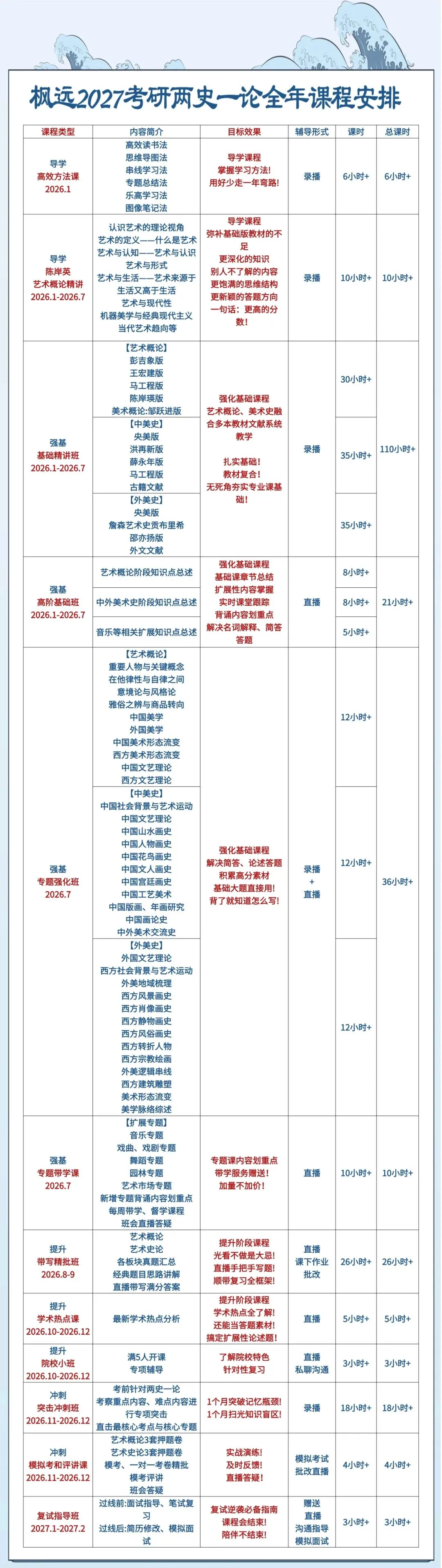 预科班包含真题择校分析课、艺术史 + 艺术概论方法课、中美史 + 外美史 + 艺术概论概述课,帮你从 0 搭建知识框架;