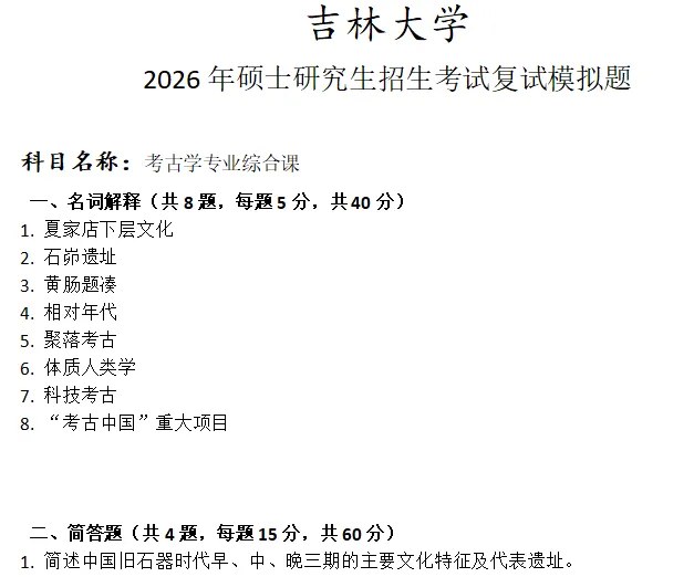 吉林大学考古学专业综合课考研复试真题模拟含答案