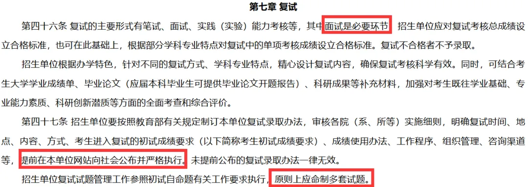 新规要求,各个招生单位必须提前在自己官网上,把复试怎么考、考什么、什么时候考、要多少分才能进复试……所有这些规矩都明明白白公布出来。没提前公布的,就算无效!