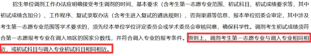 不过调剂的基本要求没变,你的初试分数既要过一志愿专业的国家线,也要符合你想调剂进去的那个专业的报考条件。通常要求两个专业相同或相近,考的科目也类似。比如力学的同学,调剂时可以调到土木、船舶、航空航天等兄弟专业。
