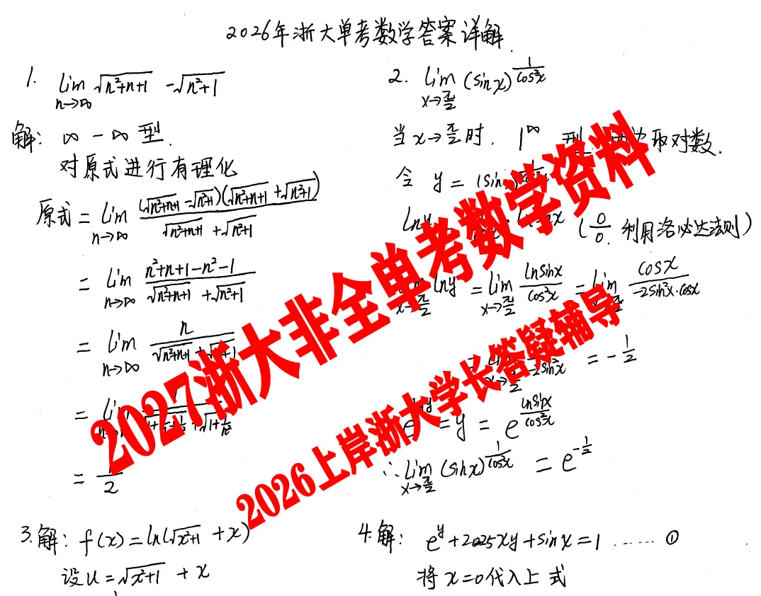 23、浙江大学单独考试数学真题2026年答案解析(独家收集到!十分珍贵!)