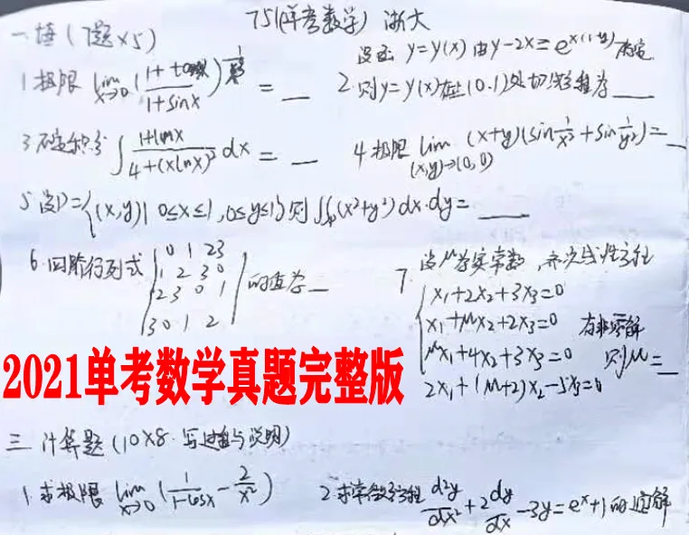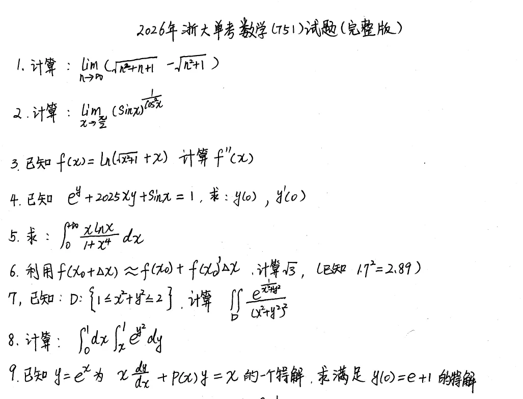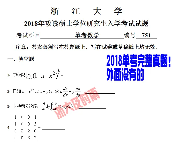 22、浙江大学单独考试数学真题2026年(独家收集到完整版!十分珍贵!)