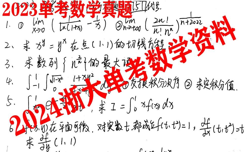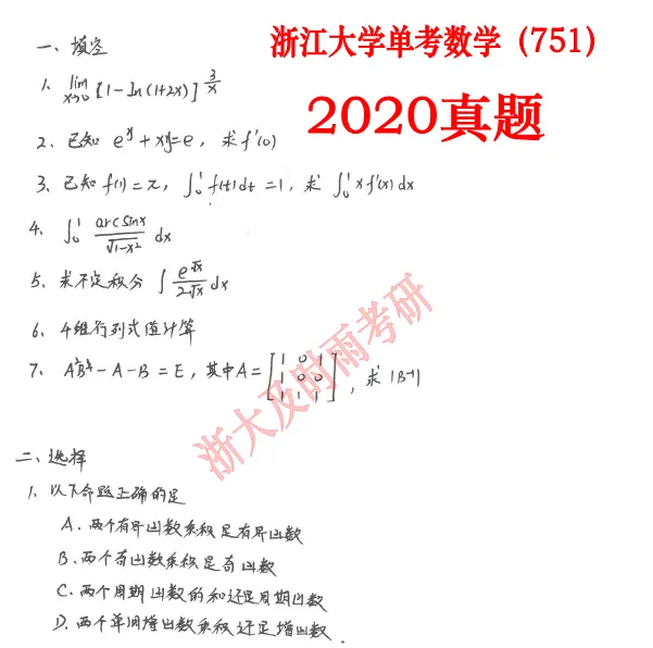 20、浙江大学单独考试数学真题2024年(独家收集到!十分珍贵!)