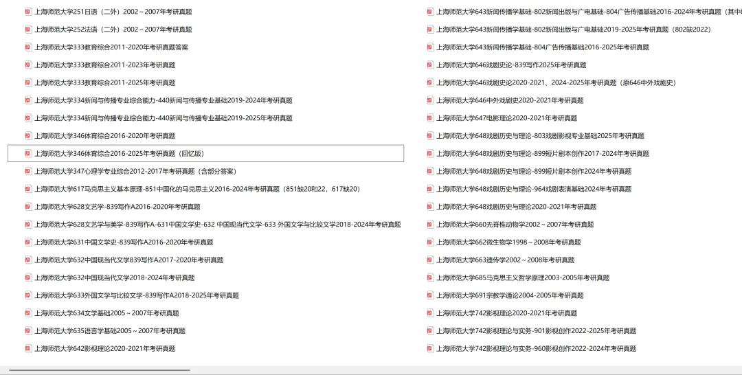 上海师范大学346体育综合2016-2025年考研真题(回忆版)