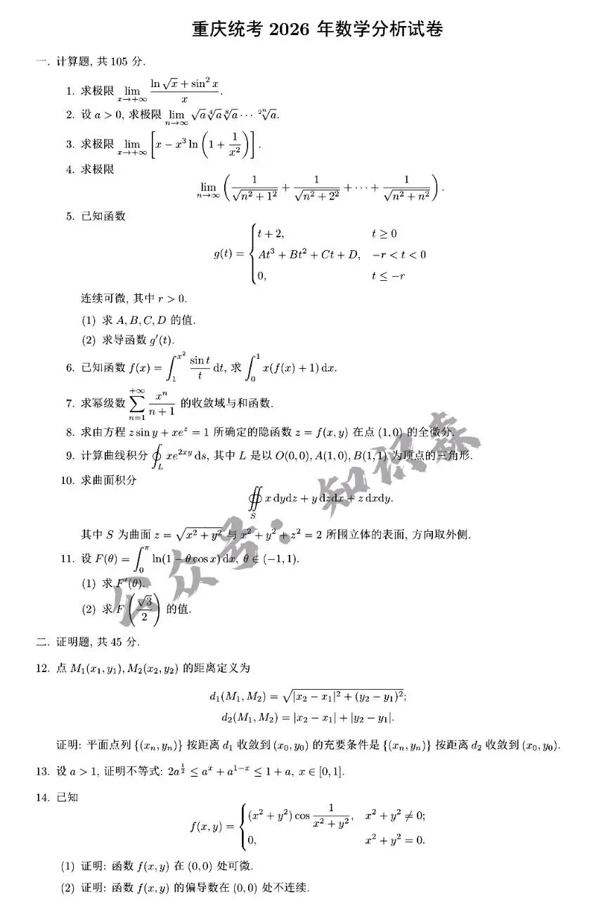 2026考研生英语、政治、数学、专业课联考真题及参考答案解析