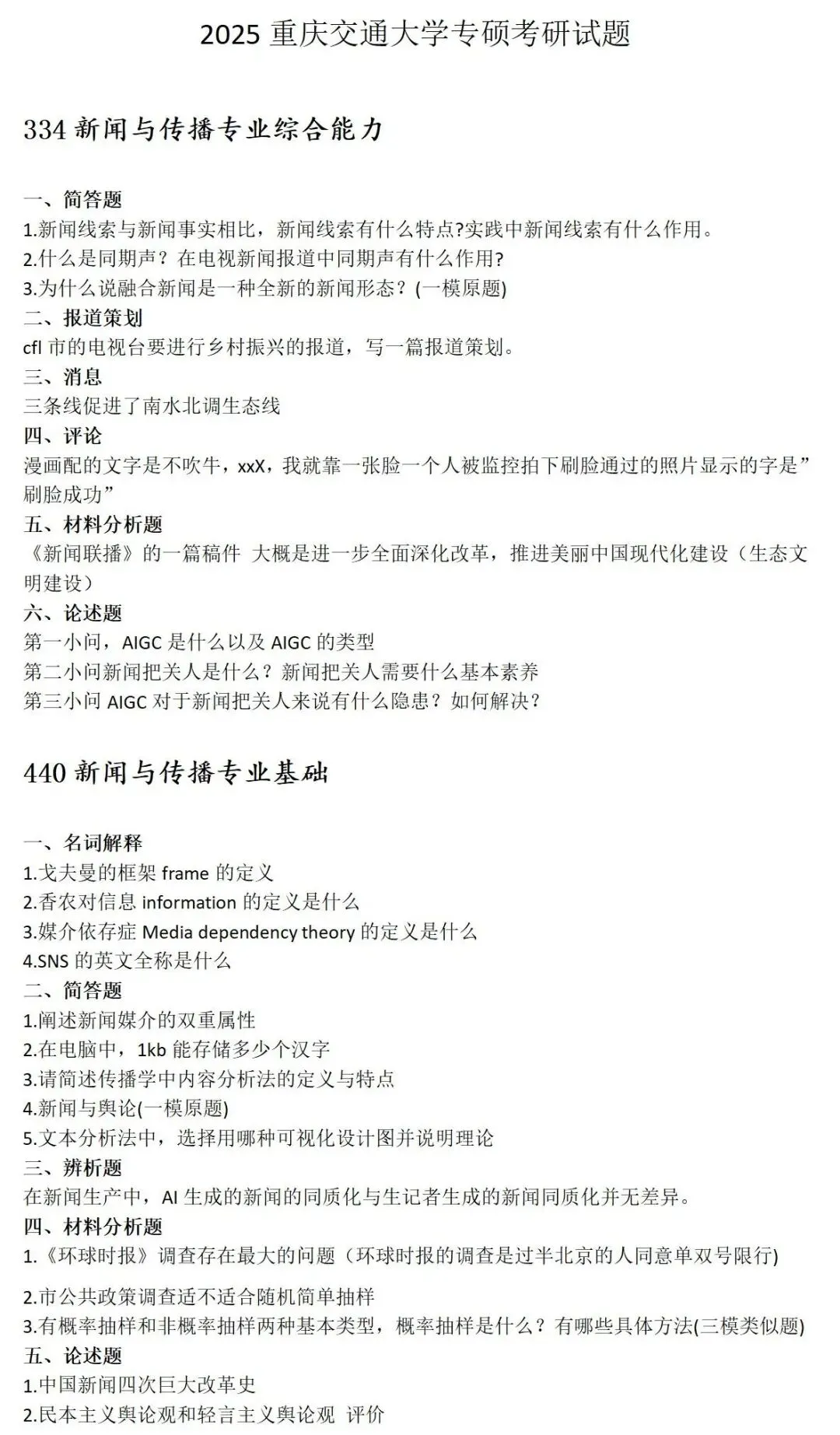 >重庆交通大学新闻与传播考研真题2020-2025历年