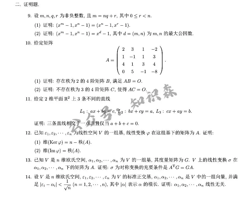 重庆市统考2026高等代数考研真题