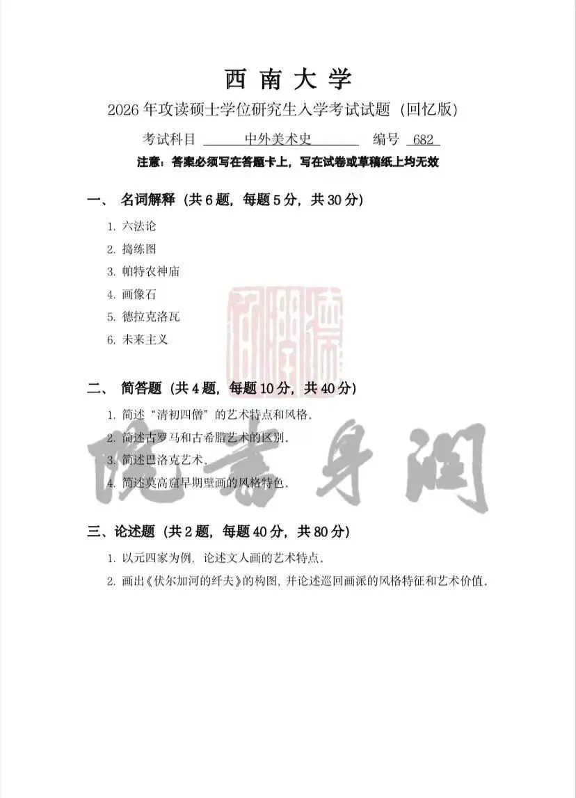 真题|浙江师范大学2026书法考研692、941真题(专硕)