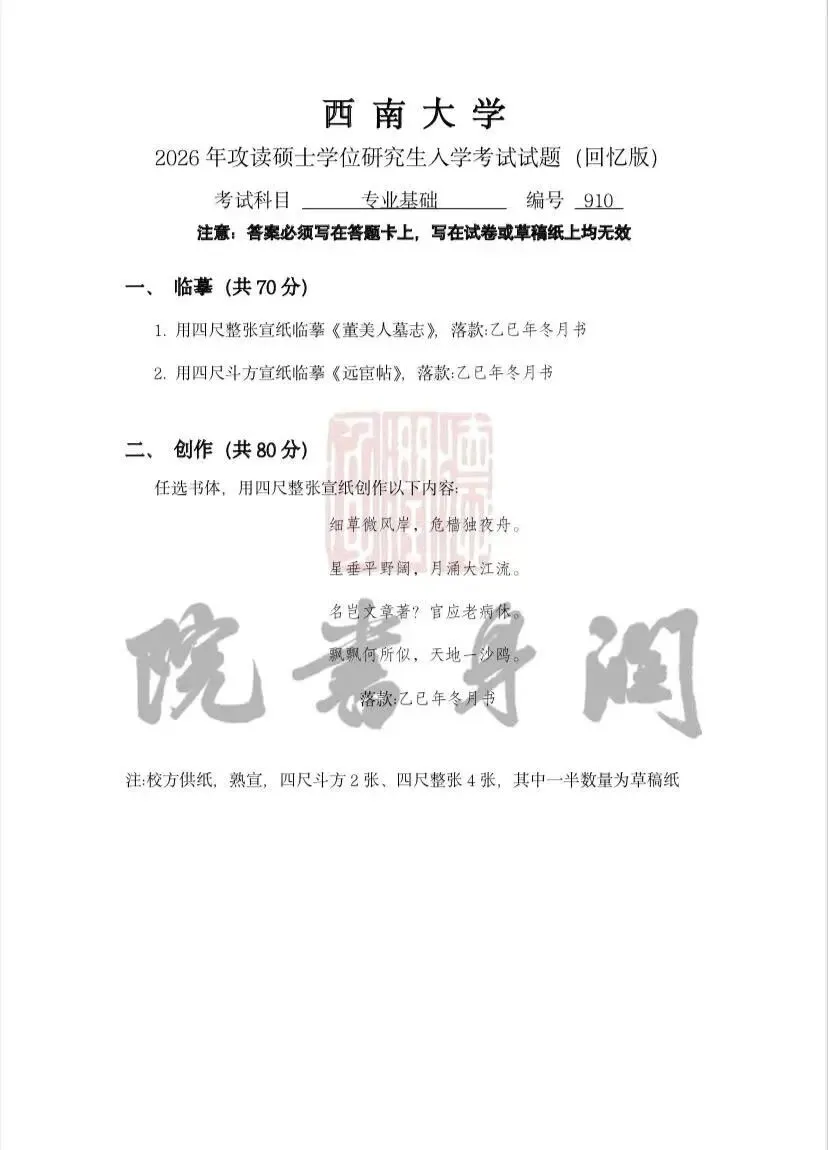 真题|浙江财经大学2026书法考研710、888真题(专硕)