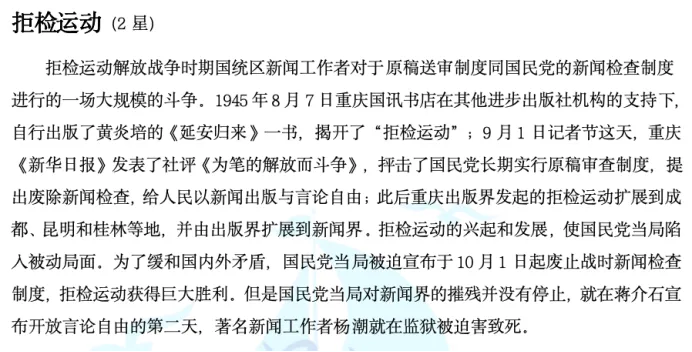 逐梦岛考点笔记小众册直接押中!“拒检运动”是《中国新闻传播史》第九章“人民解放战争时期的新闻传播活动”中的考点,本章学长总共就总结了两个名词解释考点,“拒检运动”就是其中之一,直接默写就是满分。