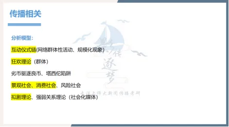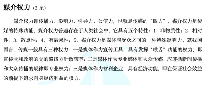 逐梦岛考点笔记小众册直接押中!“媒介权力”这个考点出现在《跨学科视野》的第一章“政治经济学视野下的传媒公益化与商品化”,第一章当中学长总共就归纳了这一个名词解释考点,大家有get到吗,也是送分题哦。
