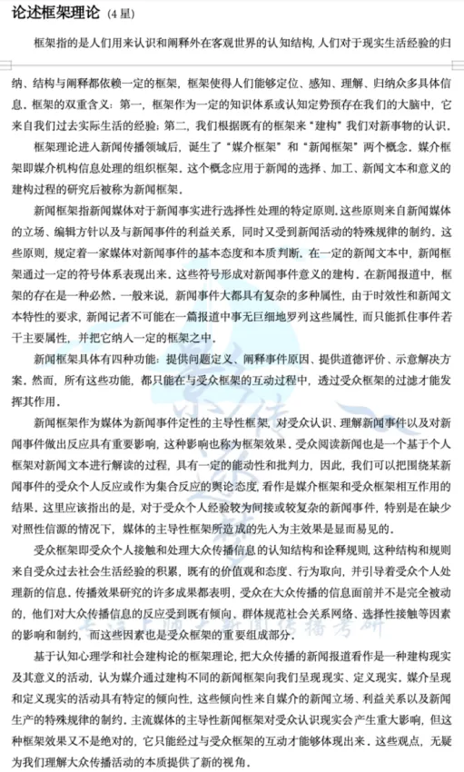 逐梦岛考点笔记新传册直接押中!“框架理论”这个考点出现在《传播学教程》的第十二章“几种主要的大众传播效果理论”。最最基础的重要考点,应该对于大家来说都是送分题了。