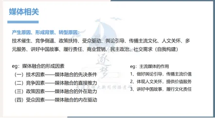 逐梦岛专题笔记新传册直接押中!“媒介融合”也是上师大经常考查的内容,逐梦岛的专题笔记中,对“媒介融合的形成因素”进行了专门强调。而在考前点睛中更是原模原样给出了这道题的答题框架,全面覆盖这道题的答题角度,直接套用可拿满分!
