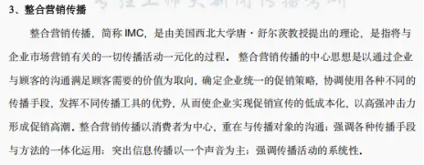 逐梦岛专题笔记广告册直接押中!这道名词解释在逐梦岛额外赠送给同学们的第四套押题卷中也原样出现了!另外,这个考点也是非常基础,在逐梦岛的专题笔记中对“整合营销传播”有充分的补充论述。