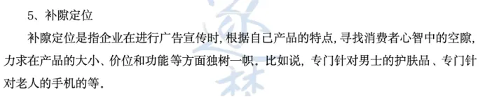 逐梦岛考点笔记广告册直接押中!“补隙定位”是定位的一种类型,出现在《广告学概论》的第六章“广告策略”当中,稍加案例补充即可拿满分。