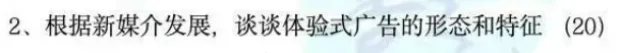 逐梦岛的广告专题笔记中,对“体验式广告”的形态、特征、意义、问题和发展策略进行了全面的补充,直接默写即可,应对课外的广告考点,从本次考研试题来看,逐梦岛式全部覆盖了。