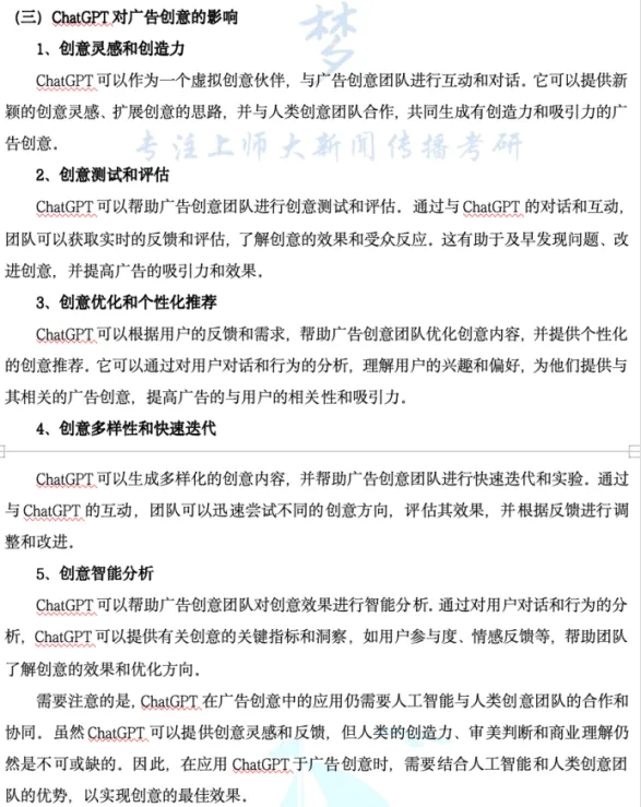 逐梦岛押题班直接押中!这道题更是一个字不差出现在了逐梦岛的考前点睛里!直接背诵拿满分轻轻松松!上师大非常重视“广告创意”,逐梦岛正是深知这一点,才会在复习时有针对性地给出了“AIGC对广告创意的影响”。
