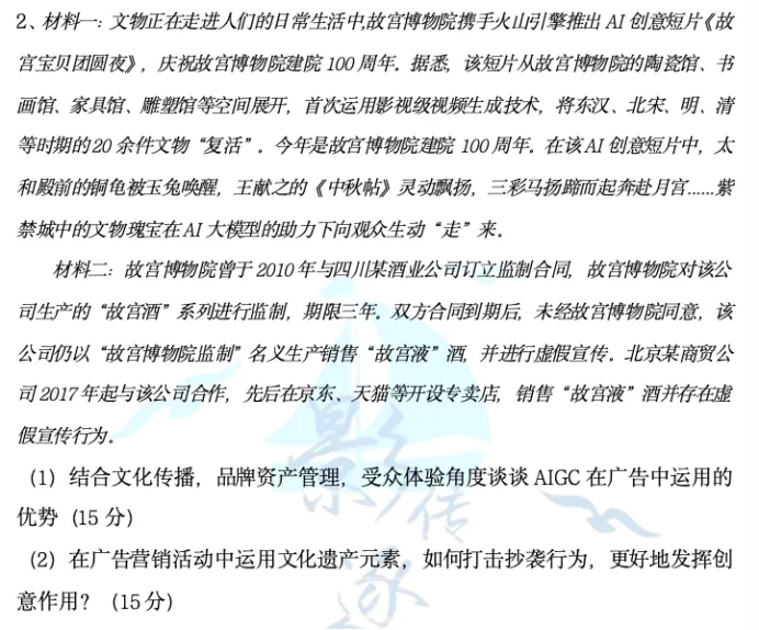 逐梦岛专题笔记广告册间接押中!第二问的答题关键在于“防止广告创意抄袭”,抄袭从何而来,有了AIGC之后基于人工智能的抄袭变得易如反掌,这也就引入了广告伦理的问题。关于“广告伦理”,逐梦岛的广告专题笔记中有一整个模块进行了论述。