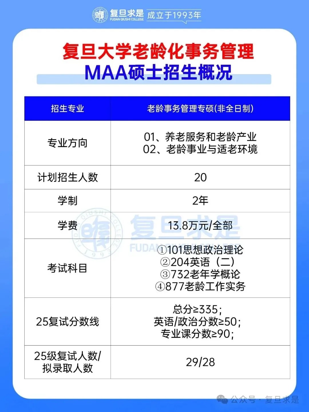 2027复旦大学MAA老龄事务管理考研专业课1月25日开讲
