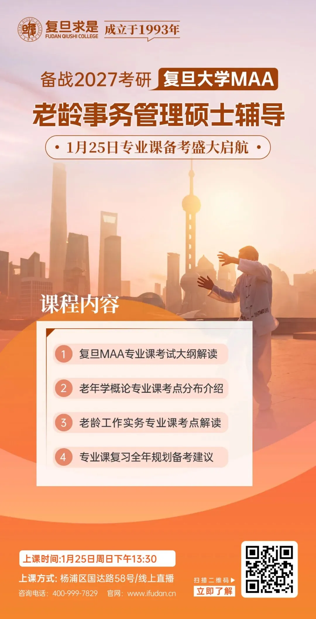2027考研的备考已经开始了吗 ,是不是觉得复旦MAA专业课参考用书有点多,无从下手,亦或政治、英语公共课基础薄弱知识点遗忘比较多呢。为帮助大家顺利上岸,复旦求是针对2027复旦MAA老龄事务管理硕士考研全程班已经开始啦,有需要的同学欢迎咨询!
