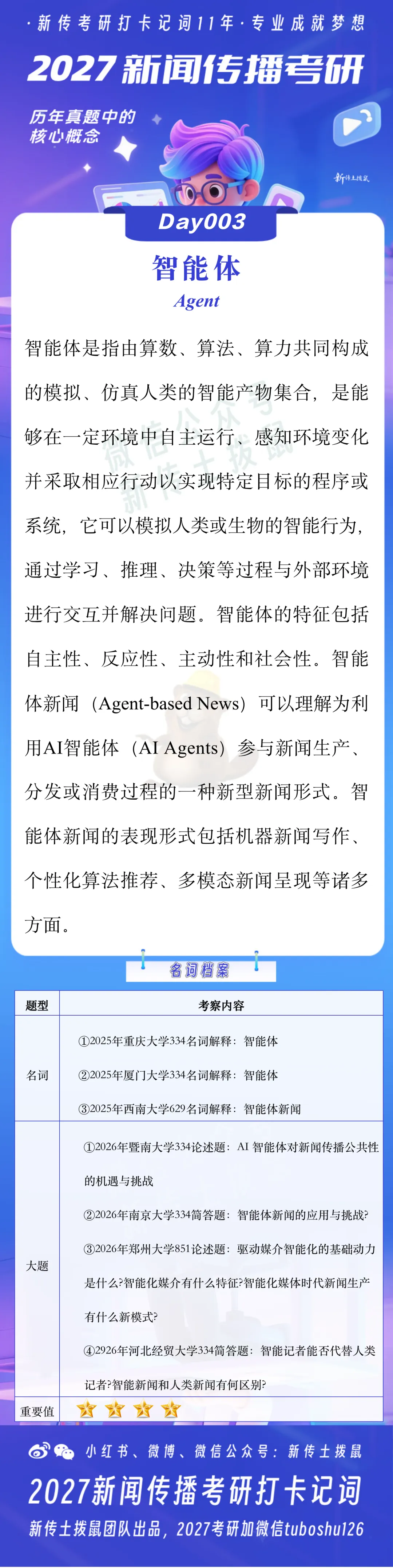 >智能体 | 2027新闻传播考研真题打卡记词Day003