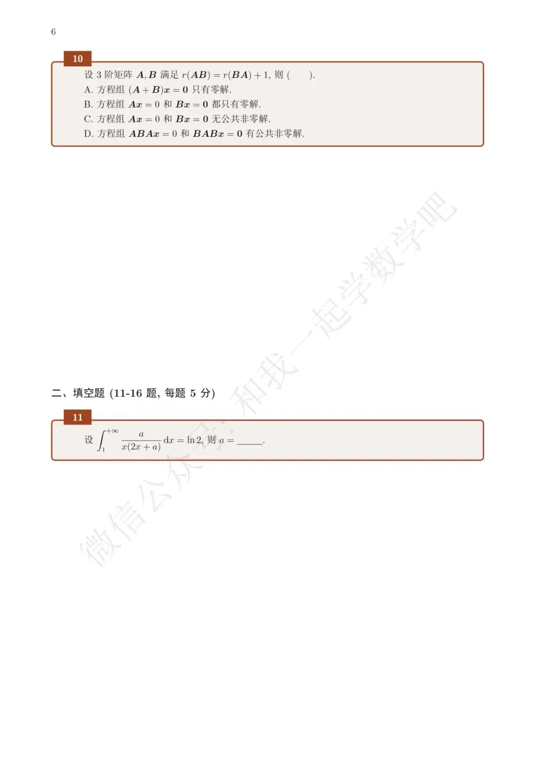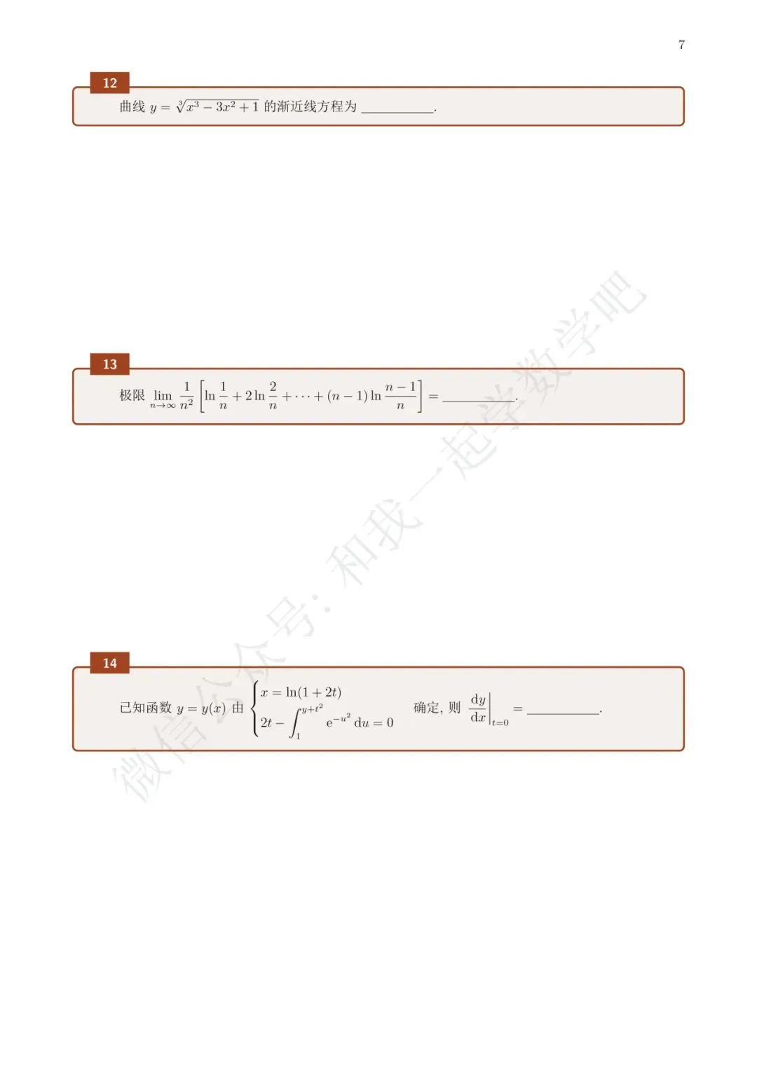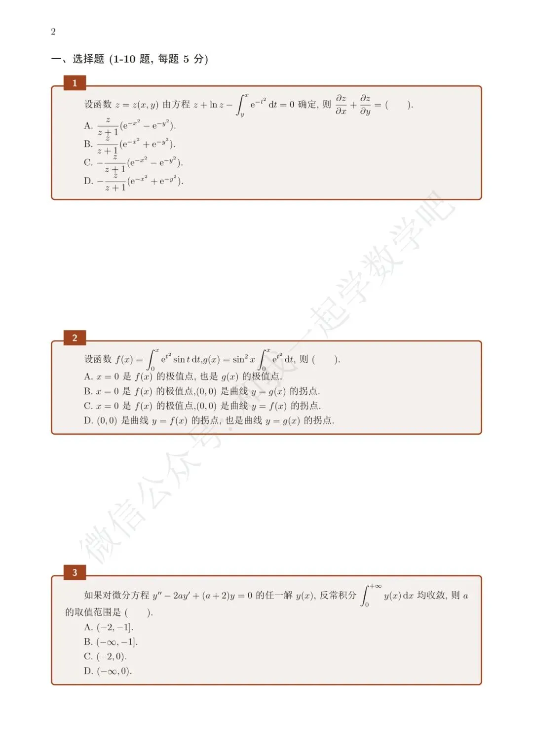 为了方便各位小伙伴们刷题,我重新排版了25年数二的真题,在每道题下面都增加了空白,方便大家写答案,记录相关知识点。