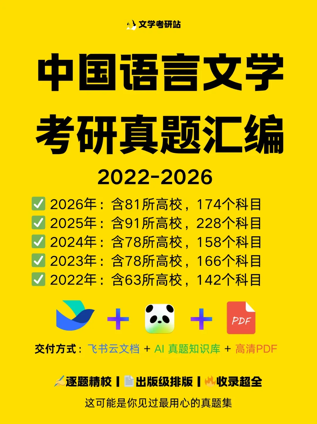 中国语言文学考研真题汇编(2022~2026)现已发布,详情可查看👉2022-2026 文学考研真题汇编(精校版)